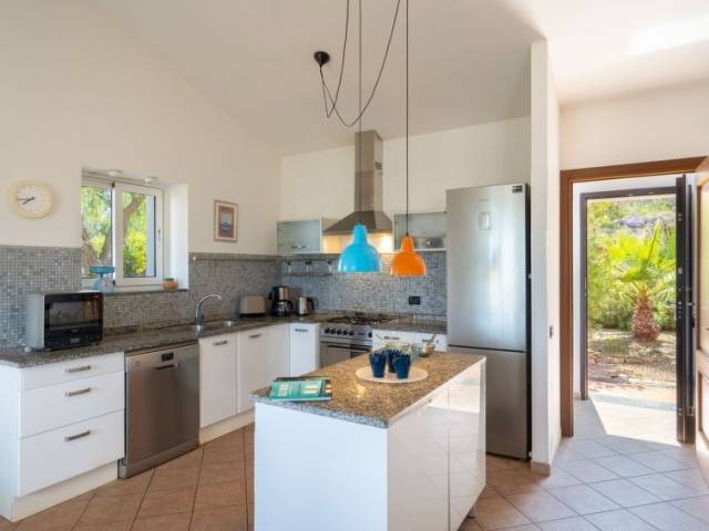 Casa 5 estancias 200 m2 en 2 plantas. Luminoso, con mobiliario de buen gusto: salón con ventanal con mesa de comedor. Salida al balcón. 1 dorm. con 1 cama doble (140 cm). Salida a la terraza. 1 dorm. con 1 cama de matrimonio (140 cm). Salida al balcón. Cocina abierta (horno, lavavajillas, 4 fuegos, tostadora, hervidor de agua eléctrico, microondas, congelador, cafetera eléctrica). Salida a la terraza. Ducha/bidet/WC. En planta inferior: 1 dorm. con 1 cama doble (140 cm). 1 dorm. con 1 sofá-cama doble (160 cm). Salida al jardín. Baño/ducha/WC. Calefacción de gas. Calefacción disponible desde el 15.10. al 30.04. Balcón, 2 terrazas, cenador. Muebles de terraza, barbacoa (portátil), tumbonas (4), trastero. El alojamiento dispone de: lavadora, plancha, trona, cuna. Internet (Wifi, gratis). CITRA: 008031-LT-0673