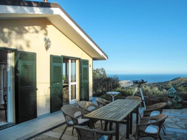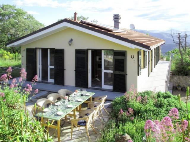 Casa de campo "Villa Settimo Cielo", 450 m s.n. m., de 2 plantas, individual del año 2010, rodeada de árboles y prados. En el barrio de Santa Brigida con 3 casas, a 5 km del centro de Dolcedo, a 9 km del centro de Imperia, a 25 km del centro de San Remo, lugar elevado en una colina, a 9 km del mar, en el campo. Privado: terreno en estado natural 1'000 m2, jardín en diferentes niveles (no está vallado). En el inmueble: alarma. Acceso muy brusco, empinado, estrecho durante 200 m hasta la casa (camino de tierra). Aparcamiento (para 3 coches) en el mismo terreno. Tienda 5 km, supermercado 9 km, centro comercial 5 km, restaurante 5 km, bar 5 km, panadería 5 km, estación de tren "Imperia Porto Maurizio" 10 km, playa de arena "San Lorenzo al Mare" 9 km, piscina cubierta 12 km, lago "Lecchiore" 7 km. Rutas de senderismo desde la casa 500 m. A tener en cuenta: no adecuado para niños pequeños. Grupos de jóvenes sólo bajo petición.