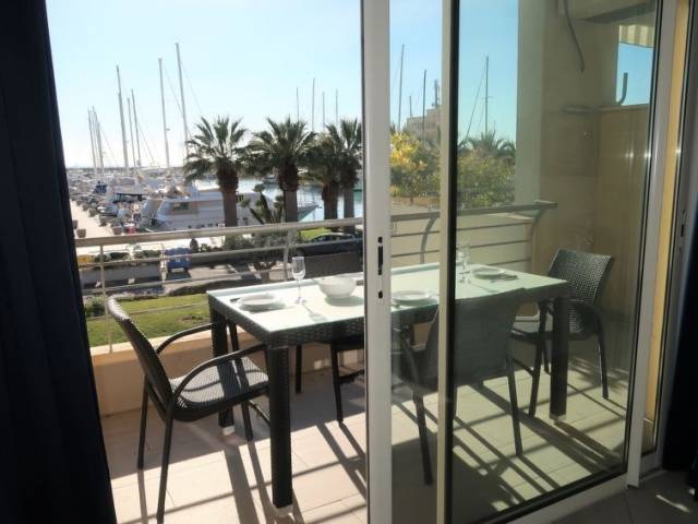 "Marta", apartamento de 2 estancias 60 m2, en planta superior. Luminoso, con mobiliario confortable y agradable: salón-comedor con ventanal con 1 sofá-cama (140 cm, 200 cm de longitud). Salida a la terraza. 1 dorm. doble, sin ventanas. Rincón-cocina (4 fogones, horno pequeño, lavavajillas, tostadora, microondas, congelador). Ducha/bidet/WC. Aire acondicionado, aire caliente. Terraza 14 m2, cubierta. Muebles de terraza. Vista panorámica bonita al puerto. El alojamiento dispone de: lavadora, trona, cuna. Internet (Wifi). Garaje. CITRA:008056-LT-0154
