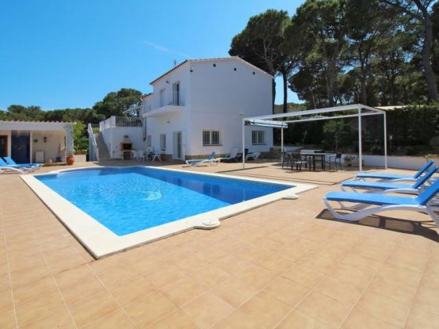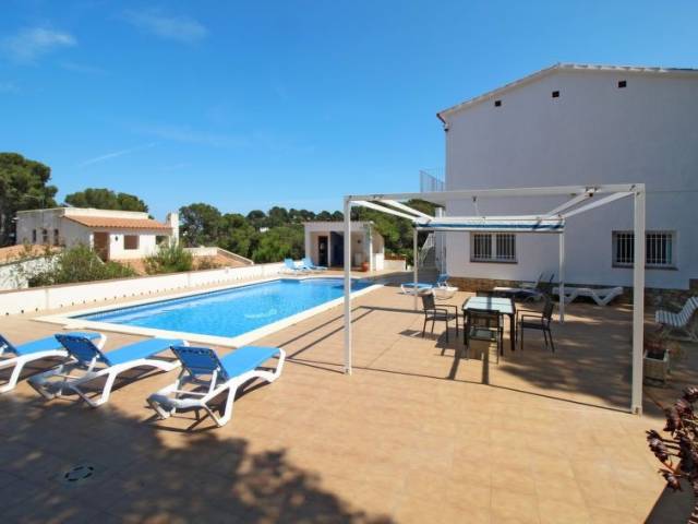 Casa de dos viviendas "Puig Vermell", agradable. A 1 km del centro de Playa de Pals, a 45 km del centro de Gerona, a 140 km del centro de Barcelona, a 1 km del mar, en una calle sin salida. Privado: terreno 400 m2 con árboles, piscina (10 x 5 m, Disponible por temporada: 01.Ene. - 31.Dic.). Ducha exterior, aparcamiento (para 2 coches) en el mismo terreno. Supermercado 1 km, playa de arena 1 km.