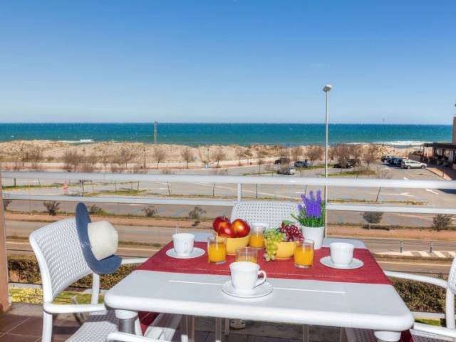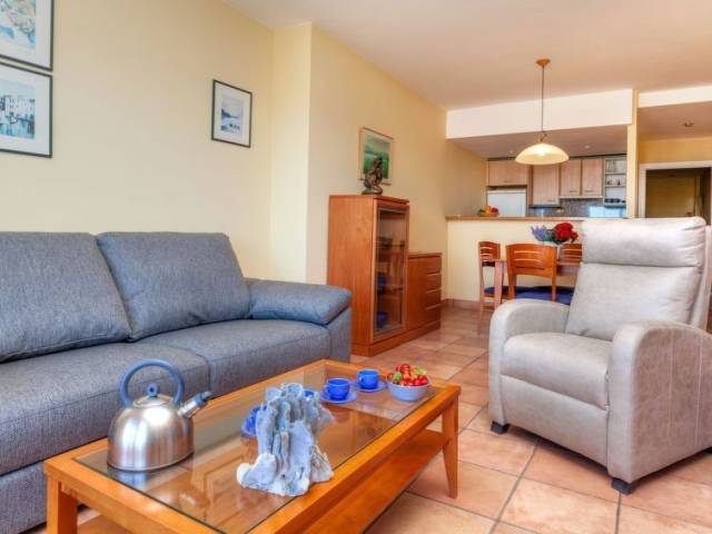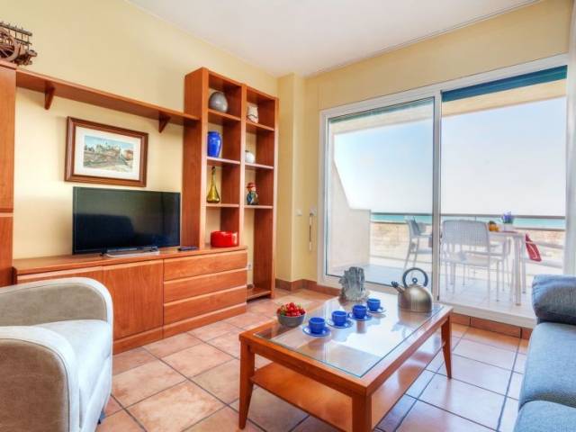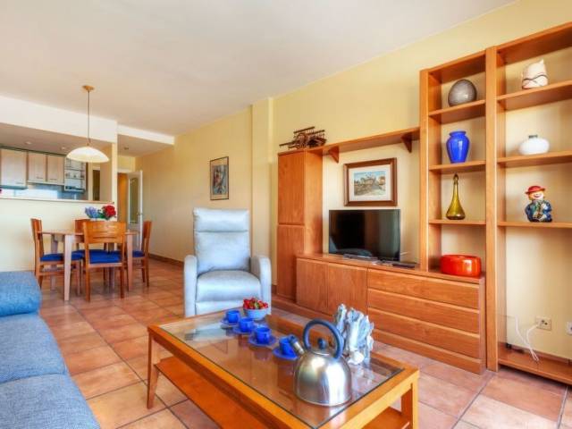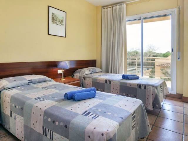 "Port Pals FIII", apartamento de 3 estancias en el 2° piso. Con mobiliario funcional: salón-comedor con TV digital. Salida a la terraza. 1 dorm. con 1 cama de matrimonio (150 cm, 190 cm de longitud), baño/WC. 1 dorm. con 2 camas (80 cm, 190 cm de longitud). Cocina abierta (lavavajillas, 4 placas de vitrocerámica, microondas, cafetera eléctrica). Baño/bidet/WC. Calentador (100 litros). Ningún tipo de calefacción. Terraza grande. Muebles de terraza. Vista al mar. El alojamiento dispone de: lavadora, plancha, trona, cuna, secador de pelo. Internet (Wifi, gratis). Plaza de aparcamiento n. 28 exterior. A tener en cuenta: TV solamente ES. HUTG-011816
