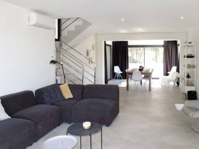 Casa "Sa Punta", moderna del año 2018. A 1.2 km del centro de Playa de Pals, a 48 km del centro de Gerona, a 137 km del centro de Barcelona, en una pendiente, a 400 m del mar. Privado: terreno 850 m2 con plantas, piscina (8 x 4 m, Disponible por temporada: 01.Ene. - 31.Dic.). Acceso por escaleras hasta la casa. Aparcamiento (para 2 coches) en el mismo terreno, garaje individual. Supermercado 1 km, playa de arena "Playa de Pals" 400 m.