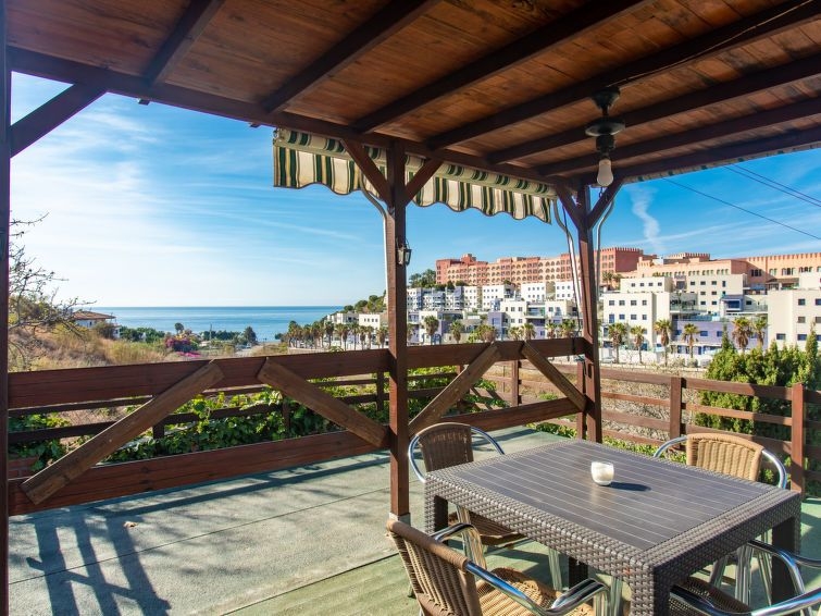"Fortuna (AMU183)", casa 4 estancias 100 m2. Con mobiliario funcional: salón-comedor con invernadero con mesa de comedor, TV digital y estufa de gas. Salida a la terraza. 1 dorm. con 1 cama (90 cm, 190 cm de longitud). 1 dorm. con 1 cama de matrimonio (140 cm, 190 cm de longitud), ducha/WC. Cocina (horno, lavavajillas, 4 fuegos, tostadora, hervidor de agua eléctrico, microondas, congelador, cafetera eléctrica) con pasa-platos. WC separado. 3 terrazas parcialmente cubierta. Muebles de terraza, barbacoa, tumbonas (3). Vista bonita al mar. El alojamiento dispone de: lavadora, plancha, cuna. Internet (Wifi, gratis). VFT/GR/03623
