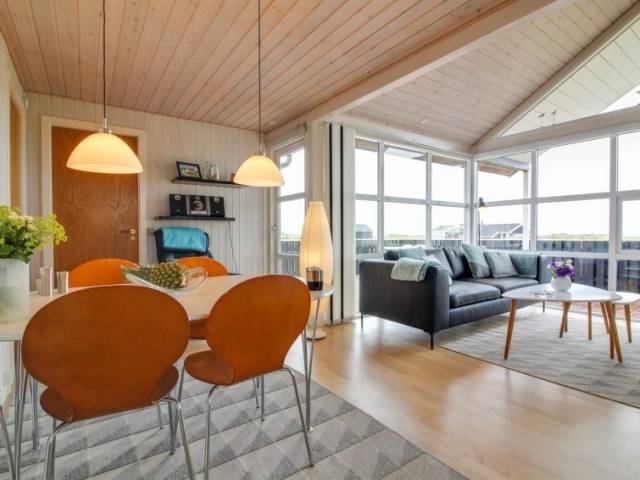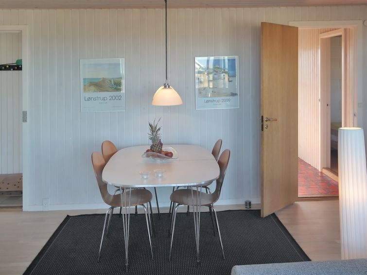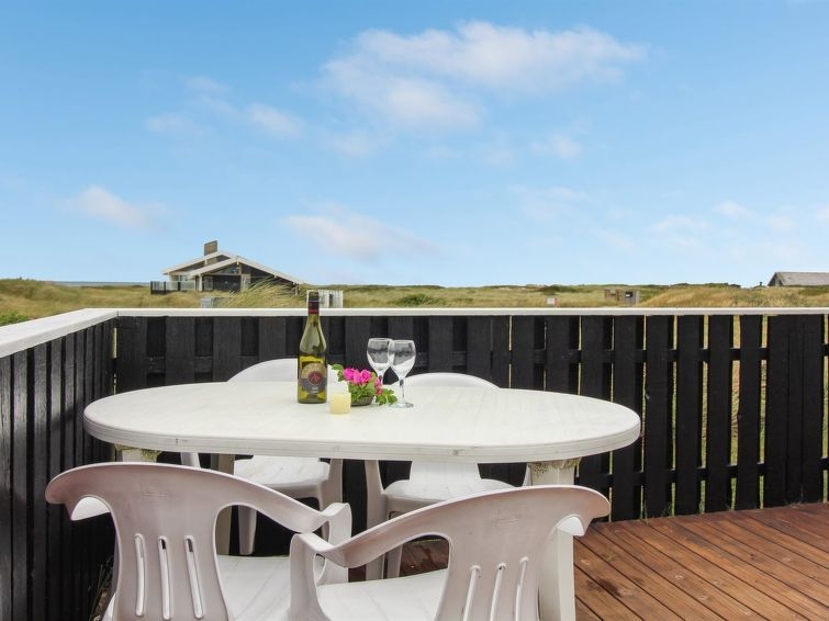 "Florine" - 150m from the sea in NW Jutland", casa 3 estancias 90 m2. Vivienda adecuada para 6 adultos. Salón con TV, CD, equipo de música y DVD. 1 dorm. con 1 cama doble. 1 dorm. con 1 cama doble. 1 dorm. con 1 cama doble. Cocina (horno, 4 placas de vitrocerámica, microondas, congelador). Ducha/WC. Terraza 8 m2, cubierta. Vista al mar. El alojamiento dispone de: Internet (Wifi). A tener en cuenta: apartamento para no fumadores.
