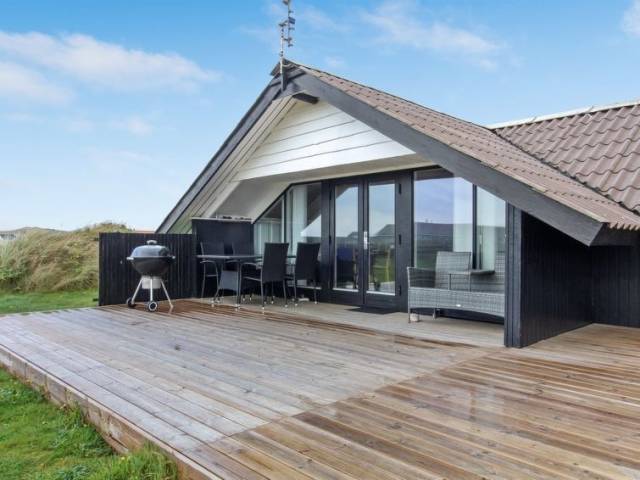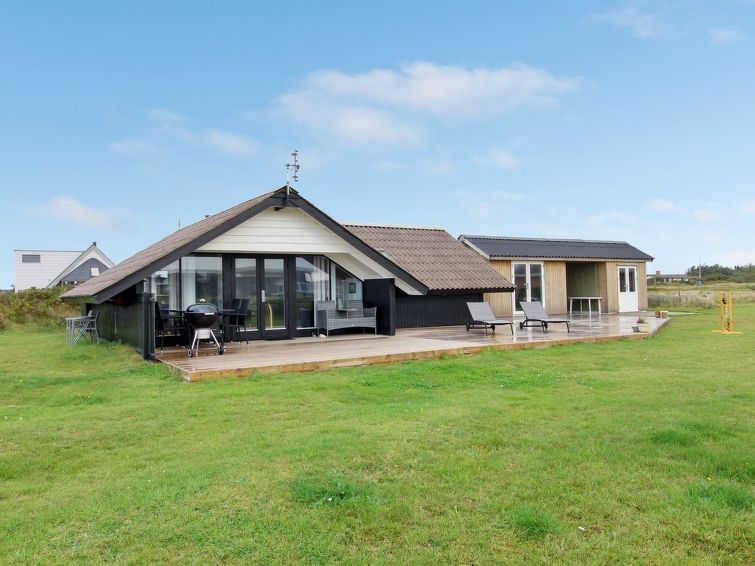 "Olesia" - 250m from the sea in Western Jutland", casa 3 estancias 66 m2. Vivienda adecuada para 6 adultos. Salón con TV. 1 dorm. con 1 cama doble. 1 dorm. con 2 camas. 1 dorm. con 1 cama doble. Cocina (4 fogones, horno, microondas, congelador). Ducha/WC. Terraza 10 m2, cubierta. El alojamiento dispone de: Internet (Wifi). Permitido máximo 1 mascota / perro.