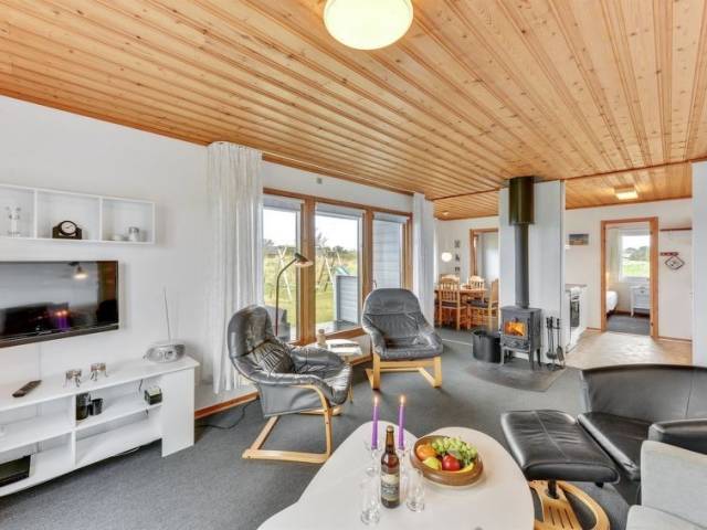 "Trineke" - from the sea in Western Jutland", casa 3 estancias 71 m2. Vivienda adecuada para 6 adultos + 1 niño. Salón con TV, radio, CD y DVD. 1 dorm. con 2 camas. 1 dorm. con 1 cama doble. 1 dorm. con 2 x 2 literas. Cocina (4 fogones, horno, lavavajillas, congelador). Ducha/WC. Terraza 16 m2, cubierta. El alojamiento dispone de: trona, cuna (extra). Internet (Wifi). A tener en cuenta: apartamento para no fumadores. Permitido máximo 1 mascota / perro.