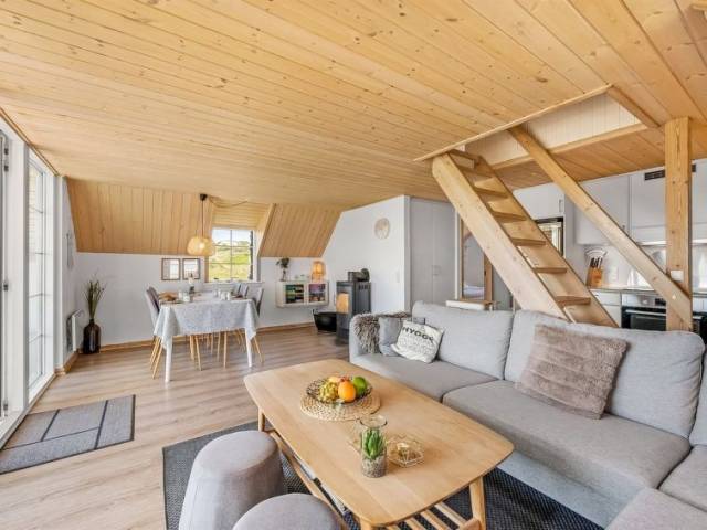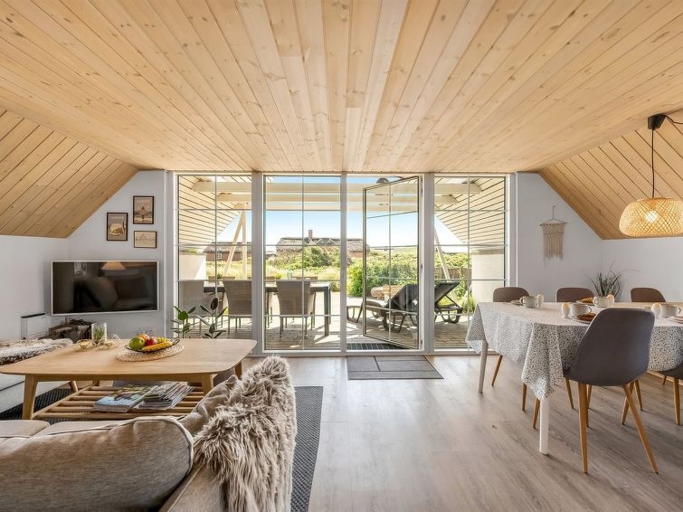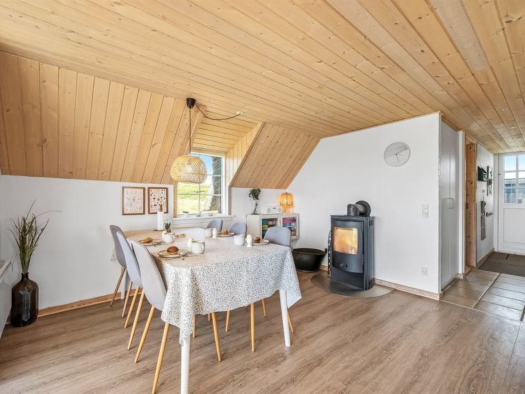 "Klimentina" - 150m from the sea in Western Jutland", casa 3 estancias 80 m2. Vivienda adecuada para 6 adultos + 1 niño. Salón con TV y CD. 1 dorm. con 1 cama doble. Cocina (horno, 4 placas de vitrocerámica, microondas, congelador). Ducha/WC. Planta superior: 1 dorm. con 1 cama doble. 1 dorm. con 2 camas. Terraza 22 m2, cubierta. El alojamiento dispone de: trona, cuna (extra). Internet (Wifi). A tener en cuenta: apartamento para no fumadores. Permitido máximo 1 mascota / perro.