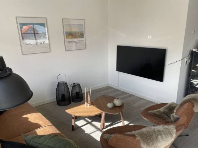 "Almar" - 400m from the sea in NW Jutland", apartamento de 2 estancias 89 m2. Vivienda adecuada para 6 adultos. Salón con TV y equipo de música. 1 dorm. con 1 sofá-cama doble y 1 cama doble. Rincón-dormitorio 1 dorm. con 1 cama y 1 posibilidad para dormir. Cocina (4 fogones, horno, lavavajillas, congelador). Ducha/WC. Terraza 20 m2. El alojamiento dispone de: trona, cuna (extra). Internet (Wifi). Plaza de aparcamiento junto a la casa.