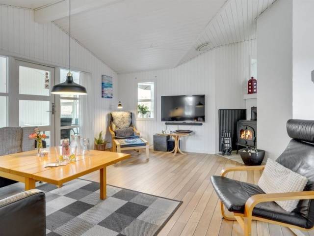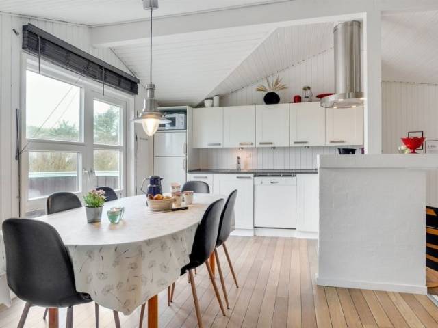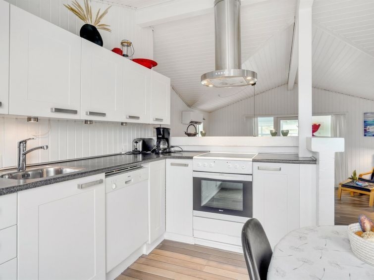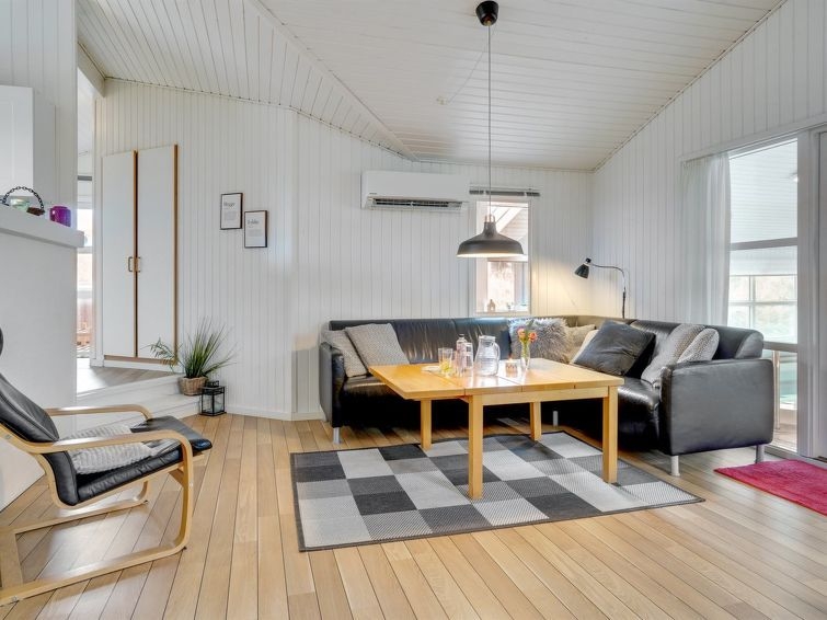 "Larisa" - 250m from the sea in NW Jutland", casa 3 estancias 141 m2. Vivienda adecuada para 7 adultos + 1 niño. Salón con TV. 1 dorm. con 1 cama doble. 1 dorm. con 1 cama doble. 1 dorm. con 1 cama y 2 x 2 literas. 1 dorm.. Cocina (4 fogones, horno, lavavajillas, microondas, congelador). Ducha/WC. Terraza 15 m2, cubierta. Vista al mar. El alojamiento dispone de: trona, cuna (extra). Internet (Wifi). A tener en cuenta: apartamento para no fumadores. Permitido máximo 1 mascota / perro.
