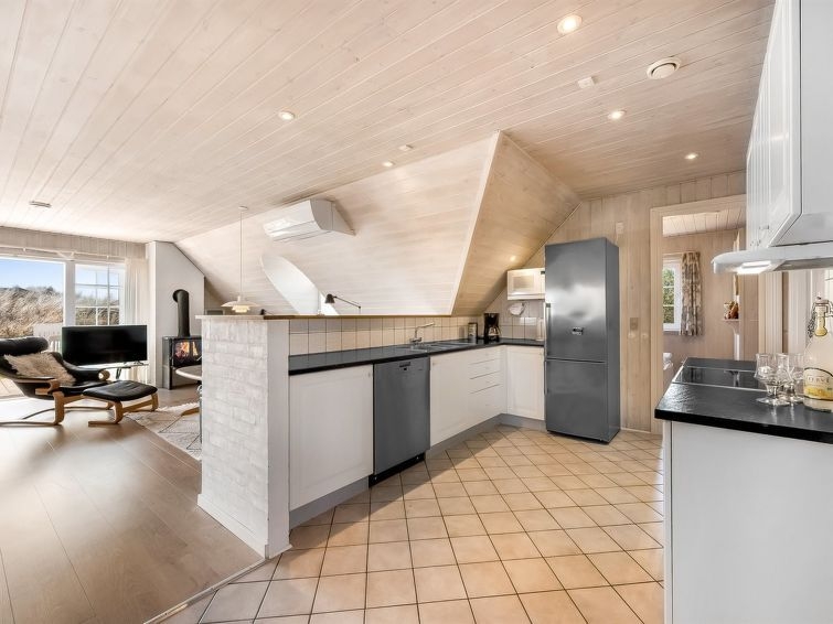 "Slava" - 250m from the sea in Western Jutland", casa 4 estancias 120 m2. Vivienda adecuada para 8 adultos. Salón con TV, radio, CD, equipo de música y DVD. 1 dorm. con 1 cama doble. 1 dorm. con 2 camas. 1 dorm. con 1 cama doble. 1 dorm. con 1 cama doble. Cocina (horno, lavavajillas, 4 placas de vitrocerámica, microondas, congelador). Ducha/WC. Terraza 10 m2, cubierta. El alojamiento dispone de: trona. Internet (Wifi). A tener en cuenta: apartamento para no fumadores.