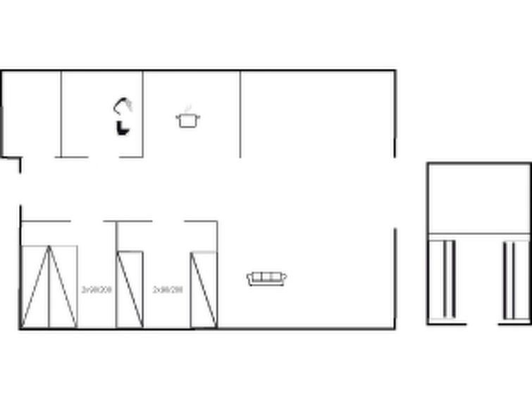 "Gyri" - 800m from the sea in Lolland, Falster and Mon", casa 2 estancias 76 m2. Vivienda adecuada para 4 adultos. Salón con TV, radio, CD y DVD. 1 dorm. con 1 cama doble. 1 dorm. con 2 camas. Cocina (horno, lavavajillas, 4 placas de vitrocerámica, congelador). Ducha/WC. Terraza 10 m2, cubierta. A tener en cuenta: apartamento para no fumadores. Permitido máximo 1 mascota / perro.