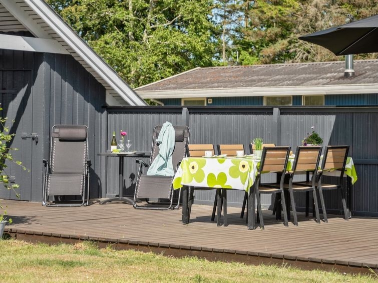 Casa unifamiliar del año 1980. A 1 km del mar. Privado: terreno 1'273 m2, jardín, cuidado. Terraza (40 m2), barbacoa, parque infantil (columpio), aparcamiento junto a la casa. Tienda de comestibles 1 km. Campo de golf 7.5 km. El propietario no acepta grupos de adolescentes/jóvenes.