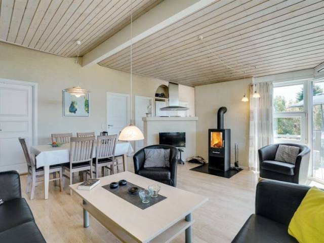 "Kajana" - 400m from the sea in Funen", casa 4 estancias 93 m2. Vivienda adecuada para 8 adultos + 1 niño. Salón con TV, CD, equipo de música y DVD. 1 dorm. con 1 cama doble. 1 dorm. con 2 x 2 literas. 1 dorm. con 1 cama doble. 1 dorm. con 1 cama doble. Cocina (horno, lavavajillas, 4 placas de vitrocerámica, microondas, congelador). 2 ducha/WC. Terraza 18 m2, cubierta. El alojamiento dispone de: trona, cuna (extra). Internet (Wifi). A tener en cuenta: apartamento para no fumadores. Permitido máximo 1 mascota / perro.