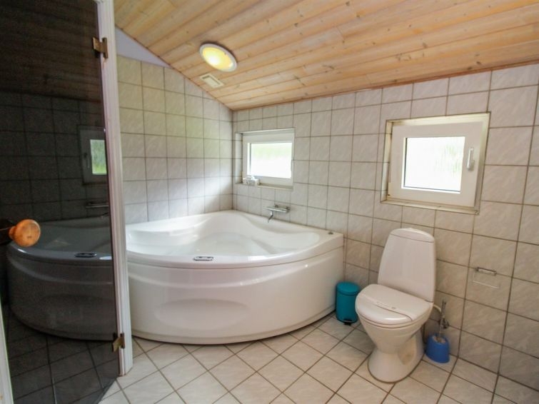 Casa unifamiliar del año 2000. A 500 m del mar. Privado: terreno en estado natural 2'527 m2. Terraza (112 m2), parque infantil (columpio). En el inmueble: sauna, lavadora. Aparcamiento junto a la casa. Tienda de comestibles 3.5 km. El propietario no acepta grupos de adolescentes/jóvenes.