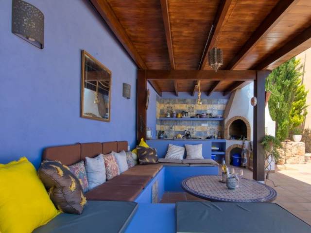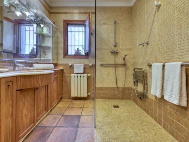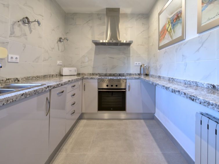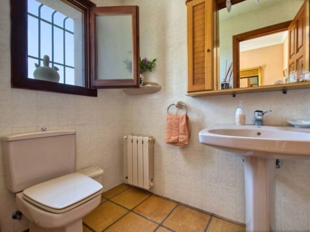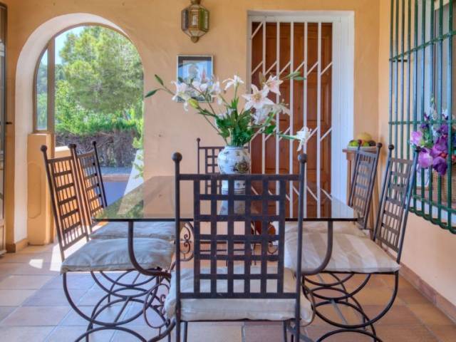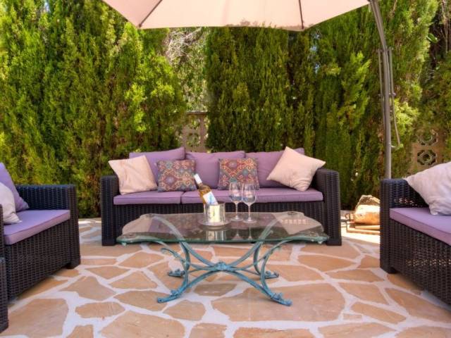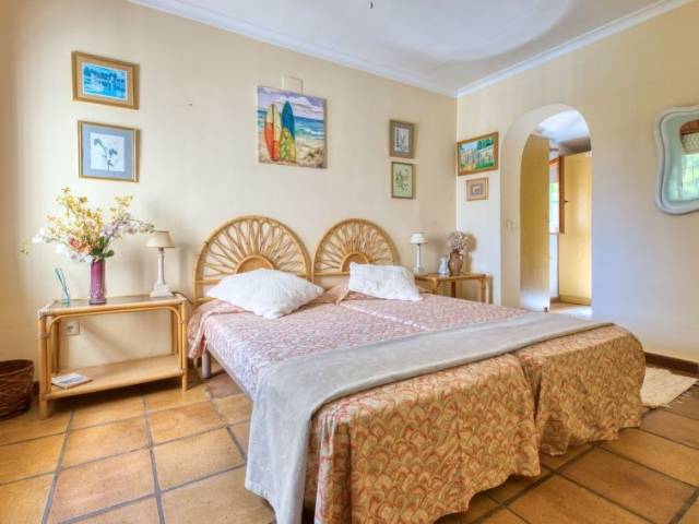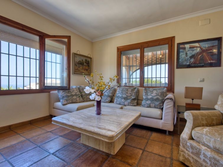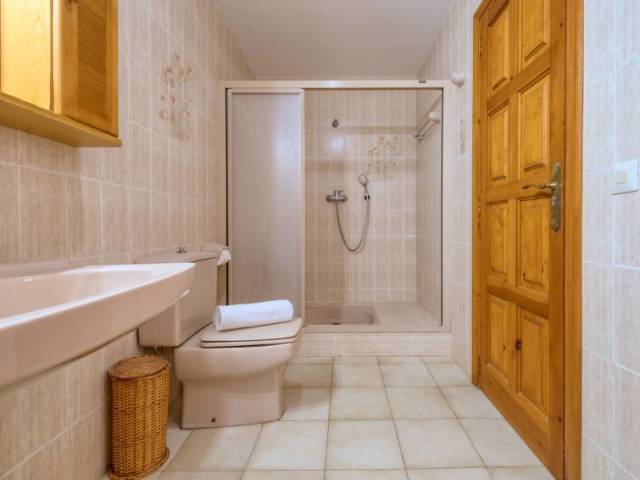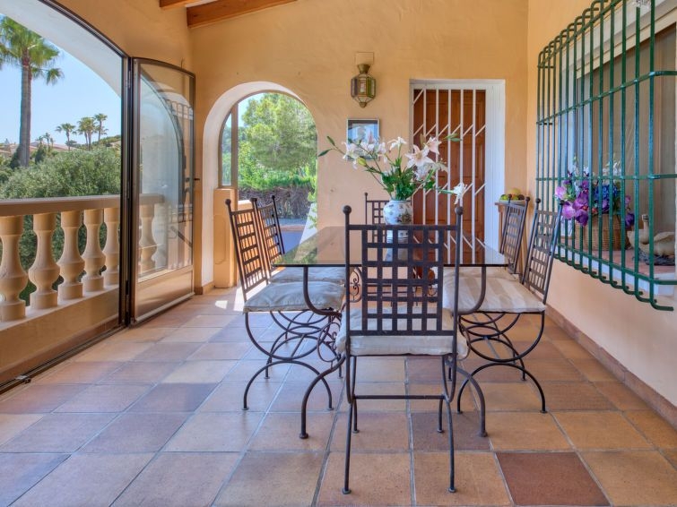 Adecuado para silla de ruedas. Villa "Karima", de 2 plantas. En el barrio de La Siesta, lugar tranquilo, soleado, elevado en un barrio residencial, a 7 km del mar, en una calle sin salida. Privado: jardín bonito, cuidado 1'000 m2 (vallado) con césped y plantas, piscina (5 x 12 m, Disponible por temporada: 01.Ene. - 31.Dic.) con escalera interior. Ducha exterior, caseta de barbacoa. En el inmueble: calefacción central. Tienda, supermercado 150 m, restaurante 100 m, playa de arena "Arenal" 7 km, cala para bañarse 5 km. Tenis 500 m. El propietario no acepta grupos de adolescentes/jóvenes.