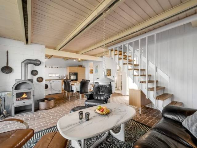 "Iines" - 200m from the sea in Western Jutland", casa 3 estancias 90 m2. Vivienda adecuada para 6 adultos + 1 niño. Salón con TV, vídeo, CD, equipo de música y DVD. 1 dorm. con 2 x 2 literas. 1 dorm. con 1 cama doble. Cocina (horno, lavavajillas, 4 placas de vitrocerámica, microondas, congelador). Ducha/WC. Planta superior: salón. 1 dorm. con 1 cama doble. Terraza 6 m2, cubierta. El alojamiento dispone de: trona, cuna (extra). Internet (Wifi). Permitido máximo 2 mascotas / perros.
