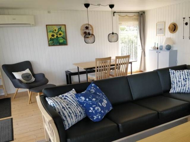 "Silka" - 250m from the sea in SE Jutland", casa 3 estancias 71 m2. Vivienda adecuada para 6 adultos. Salón con TV. 1 dorm. con 2 camas. Estudio 1 dorm. con con 2 x 2 literas, 1 cama doble. Cocina (horno, lavavajillas, 4 placas de vitrocerámica, congelador). Ducha/WC. Terraza 20 m2, cubierta. Vista al mar. El alojamiento dispone de: trona. Internet (Wifi). A tener en cuenta: apartamento para no fumadores. Permitido máximo 1 mascota / perro.