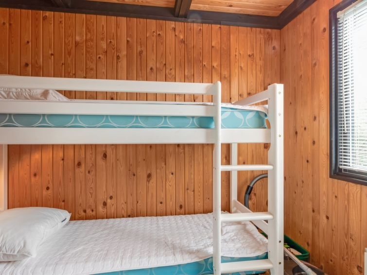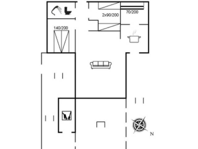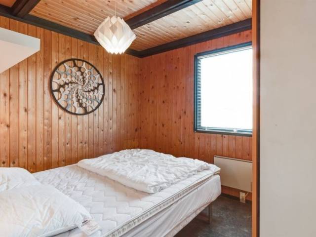 "Maini" - 600m from the sea in NW Jutland", casa 3 estancias 63 m2. Vivienda adecuada para 6 adultos. Salón con TV, CD, equipo de música y DVD. 1 dorm. con 2 x 2 literas. 1 dorm. con 1 cama doble. 1 dorm. con 2 camas. Cocina (4 fogones, horno). Ducha/WC. Terraza 20 m2, cubierta. Vista al mar. Permitido máximo 3 mascotas / perros.