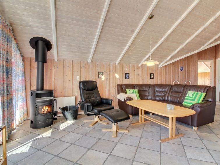 "Uma" - 400m from the sea in Western Jutland", casa 3 estancias 82 m2. Vivienda adecuada para 6 adultos + 1 niño. Salón con TV, radio y CD. 1 dorm. con 1 cama doble. 1 dorm. con 2 x 2 literas. 1 dorm. con 1 cama doble. Cocina (horno, lavavajillas, 4 placas de vitrocerámica, microondas, congelador). Ducha/WC. El alojamiento dispone de: trona, cuna (extra). Internet (Wifi). A tener en cuenta: apartamento para no fumadores.