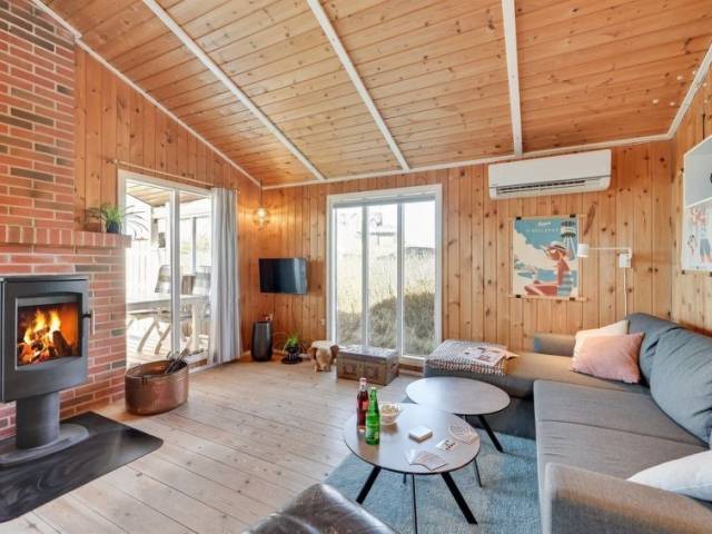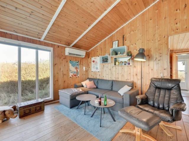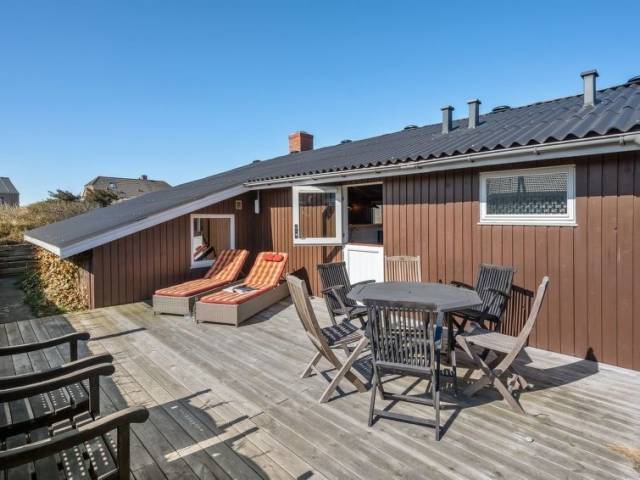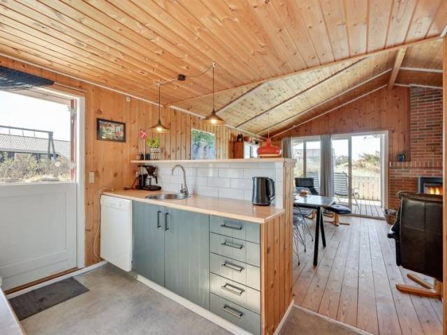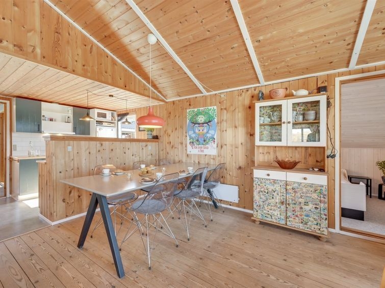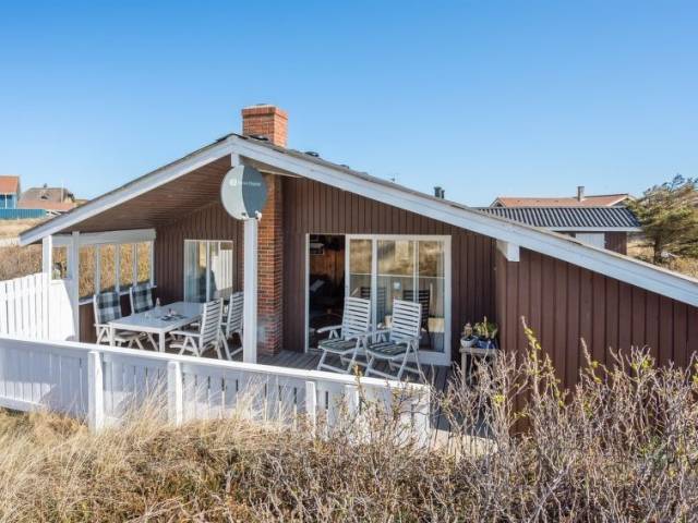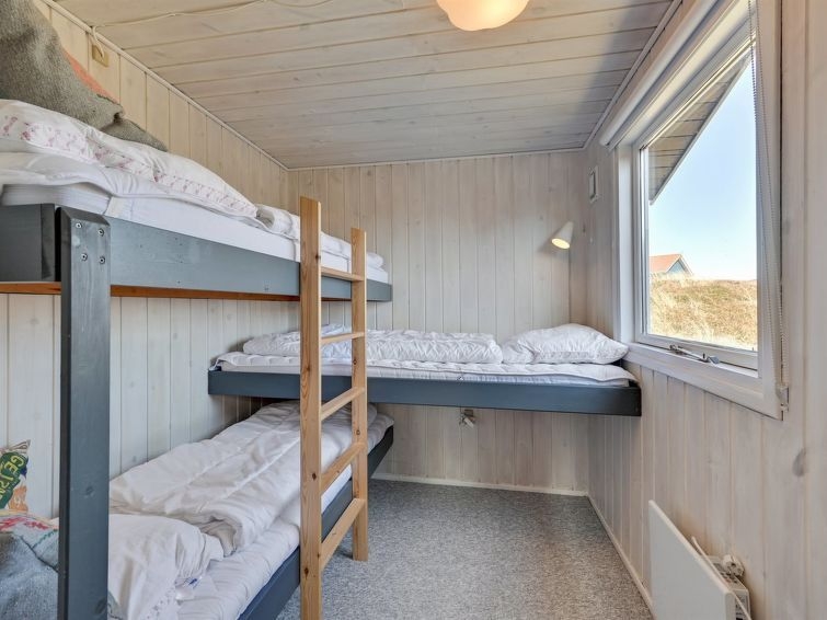 "Brigit" - 200m from the sea in Western Jutland", casa 3 estancias 67 m2. Vivienda adecuada para 6 adultos + 1 niño. Salón con TV y radio. 1 dorm. con 1 cama doble. 1 dorm. con 2 camas. 1 dorm. con 2 x 2 literas. Cocina (horno, lavavajillas, 4 placas de vitrocerámica, microondas, congelador). Ducha/WC. Terraza 15 m2, cubierta. El alojamiento dispone de: Internet (Wifi). Permitido máximo 1 mascota / perro.