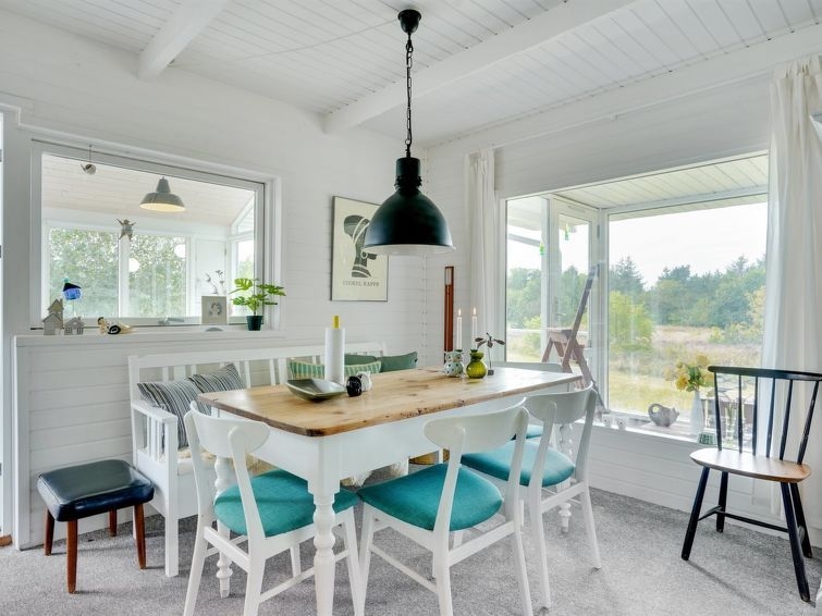 "Thersten" - 500m to the inlet in The Liim Fiord", casa 3 estancias 80 m2. Vivienda adecuada para 6 adultos. Salón con TV y radio. 1 dorm. con 1 cama doble. Estudio 1 dorm. con con 2 camas y 1 cama doble. Cocina (horno, lavavajillas, 4 placas de vitrocerámica, microondas, congelador). Ducha/WC. Invernadero. El alojamiento dispone de: Internet (Wifi). A tener en cuenta: apartamento para no fumadores. Permitido máximo 1 mascota / perro.