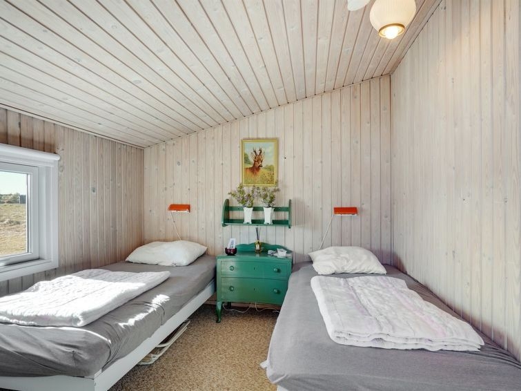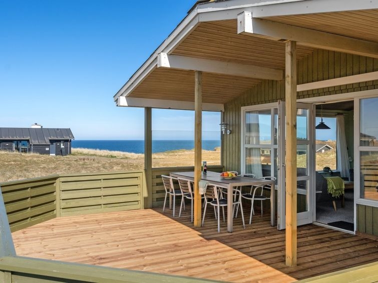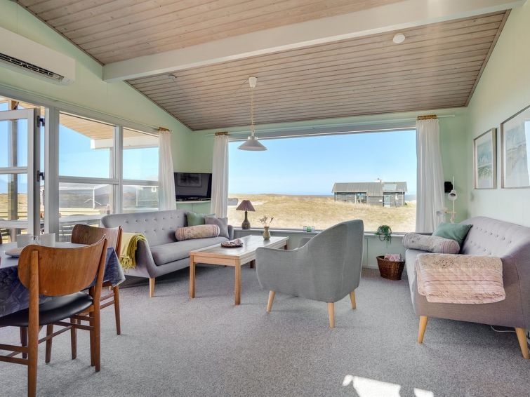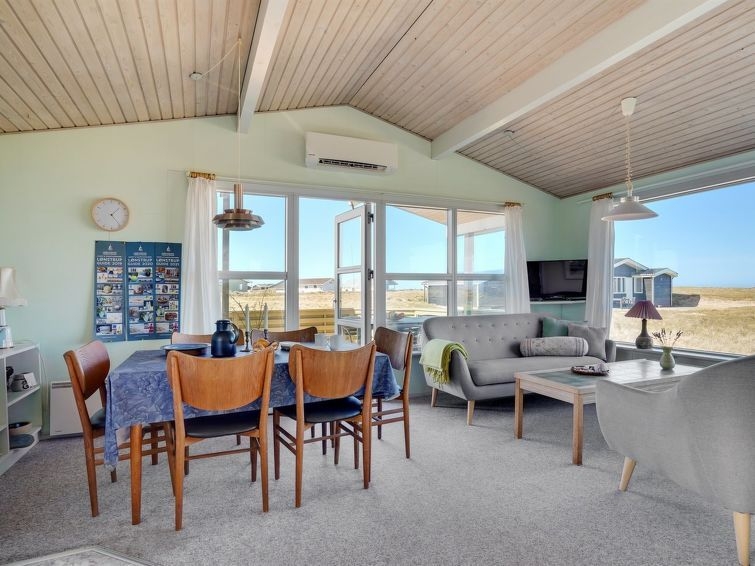 "Asger" - 50m from the sea in NW Jutland", casa 3 estancias 65 m2. Vivienda adecuada para 6 adultos. Salón con TV, radio y CD. Estudio 1 dorm. con con 1 cama. 1 dorm. con 2 x 2 literas. Cocina (horno, lavavajillas, 4 placas de vitrocerámica, microondas, congelador). Ducha/WC. Terraza 12 m2, cubierta. Vista al mar. El alojamiento dispone de: Internet (Wifi). A tener en cuenta: apartamento para no fumadores.