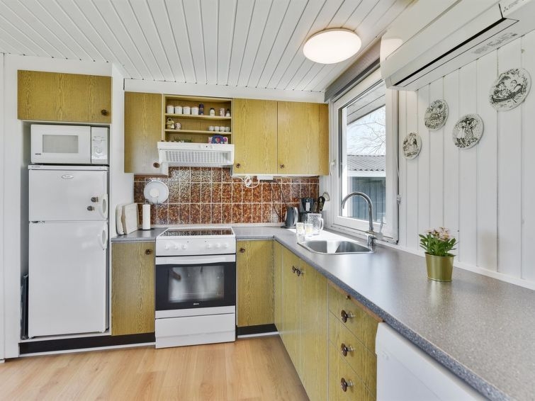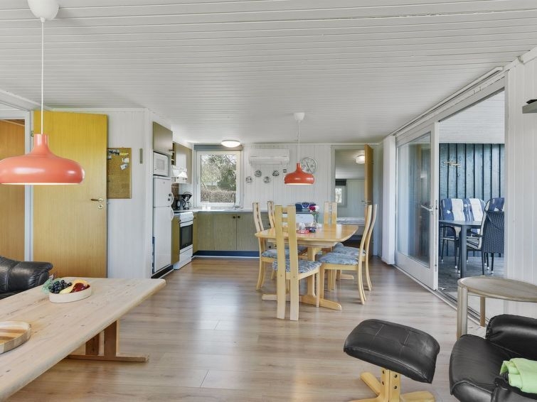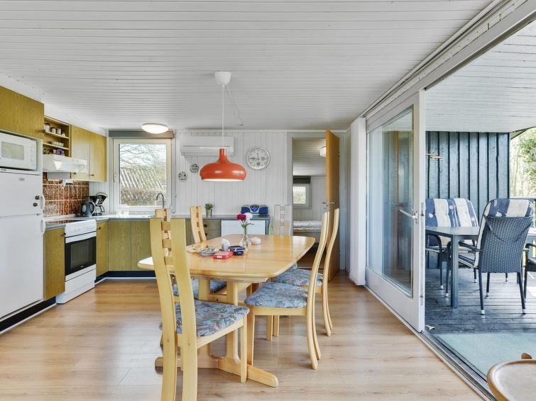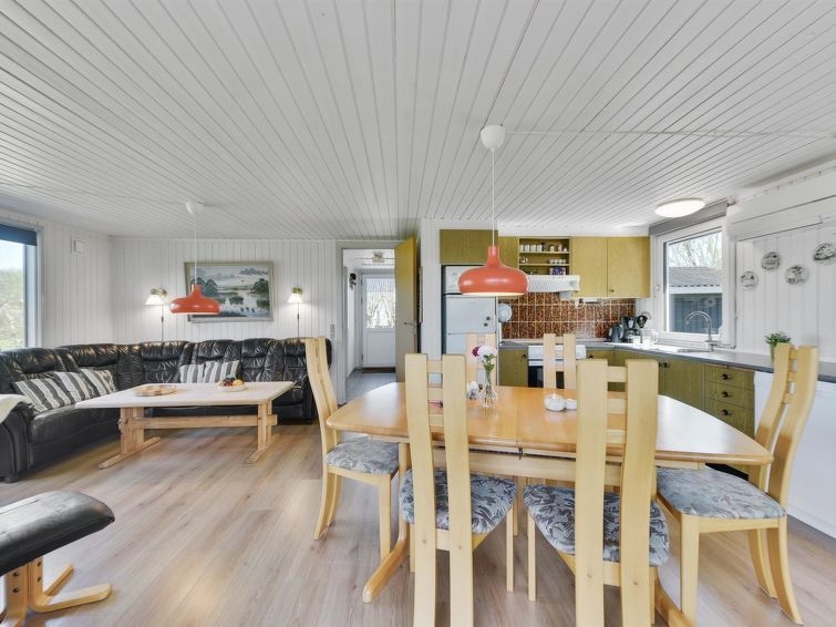 "Gudrund" - 800m to the inlet in Western Jutland", casa 3 estancias 70 m2. Vivienda adecuada para 6 adultos. Salón con TV, radio y equipo de música. 1 dorm. con 1 cama doble. 1 dorm. con 2 camas. 1 dorm. con 2 camas. Cocina (horno, lavavajillas, 4 placas de vitrocerámica, microondas, congelador). Ducha/WC. Terraza 15 m2, cubierta. El alojamiento dispone de: Internet (Wifi). A tener en cuenta: apartamento para no fumadores. Permitido máximo 1 mascota / perro.