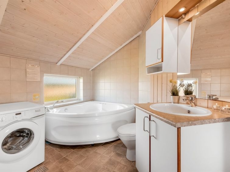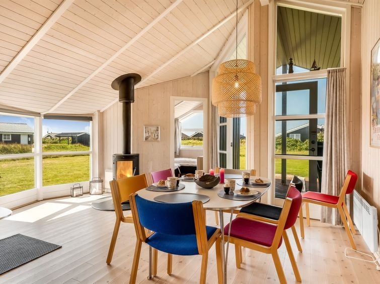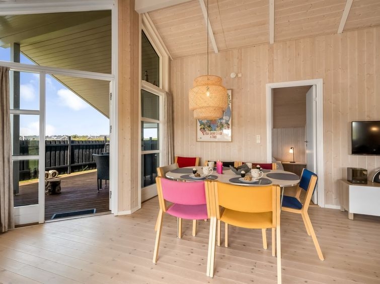 "Eemil" - 700m from the sea in Western Jutland", casa 3 estancias 77 m2. Vivienda adecuada para 6 adultos + 1 niño. Salón con TV, radio, CD y equipo de música. 1 dorm. con 1 cama doble. 1 dorm. con 2 camas. 1 dorm. con 2 camas. Cocina (horno, lavavajillas, 4 placas de vitrocerámica, microondas, congelador). Ducha/WC. Terraza 20 m2, cubierta. El alojamiento dispone de: trona. Internet (Wifi). A tener en cuenta: apartamento para no fumadores. Permitido máximo 1 mascota / perro.