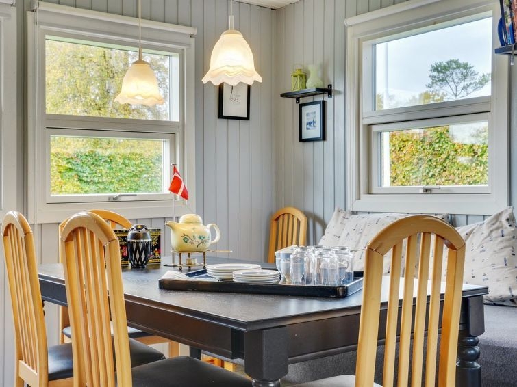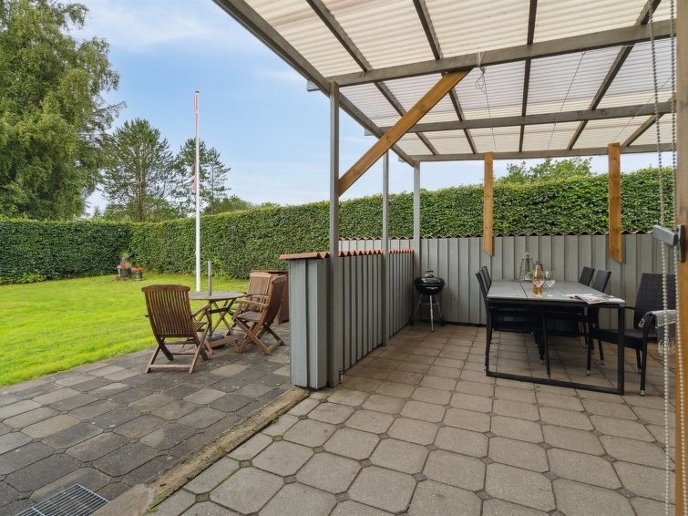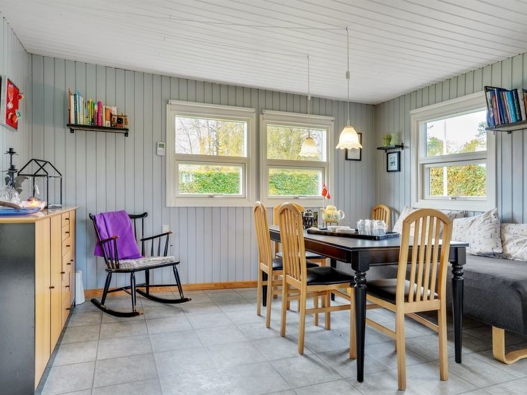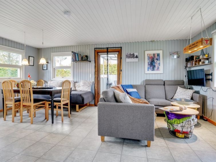 "Kjartan" - 1.2km from the sea in NE Jutland", casa 3 estancias 70 m2. Vivienda adecuada para 8 adultos. Salón con TV, radio y CD. 1 dorm. con 1 cama doble. Estudio 1 dorm. con con 1 x 1 literas, 1 cama doble. Cocina (horno, 4 placas de vitrocerámica, congelador). 2 ducha/WC. Terraza 24 m2, cubierta. El alojamiento dispone de: trona. Internet (Wifi). A tener en cuenta: apartamento para no fumadores.