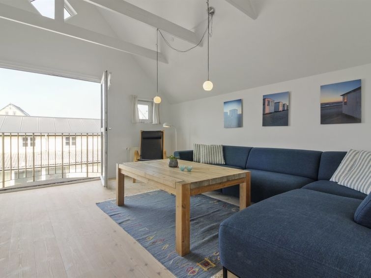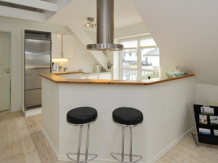 "Githe" - 100m from the sea in NW Jutland", apartamento de 2 estancias 100 m2. Vivienda adecuada para 6 adultos. Salón con TV, radio y CD. 1 dorm. con 1 cama doble. Altillo abierto 1 dorm. con 1 cama doble. Cocina (horno, lavavajillas, 4 placas de vitrocerámica, congelador). Ducha/WC. El alojamiento dispone de: lavadora. Internet (Wifi). A tener en cuenta: apartamento para no fumadores.