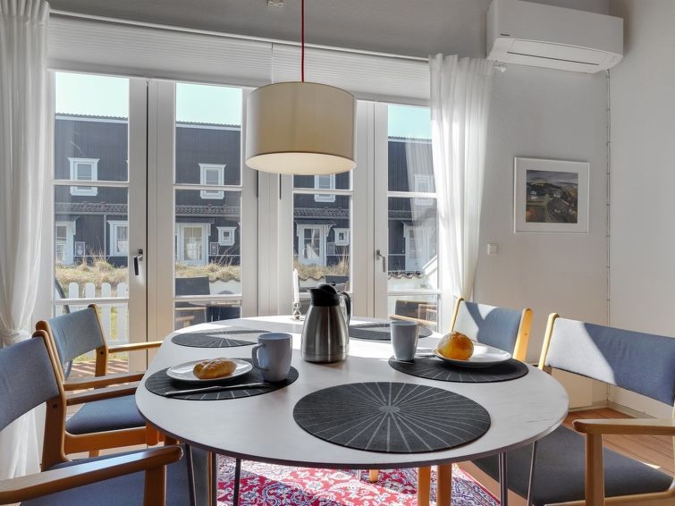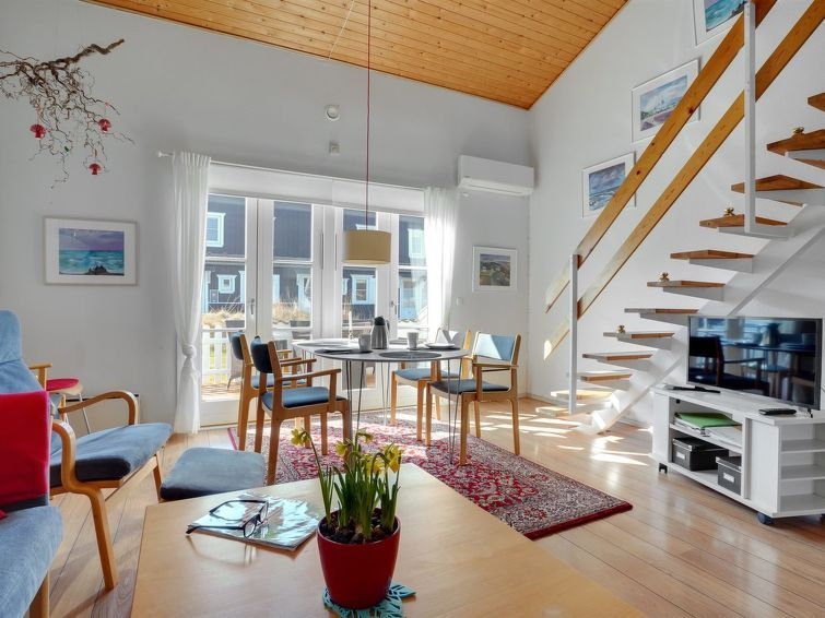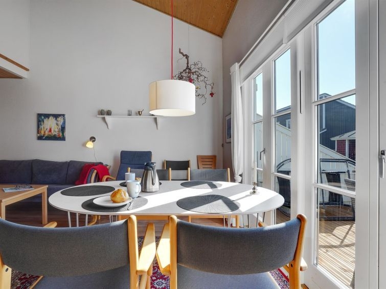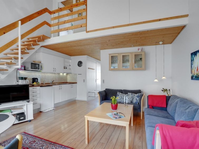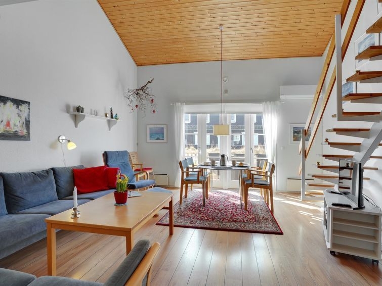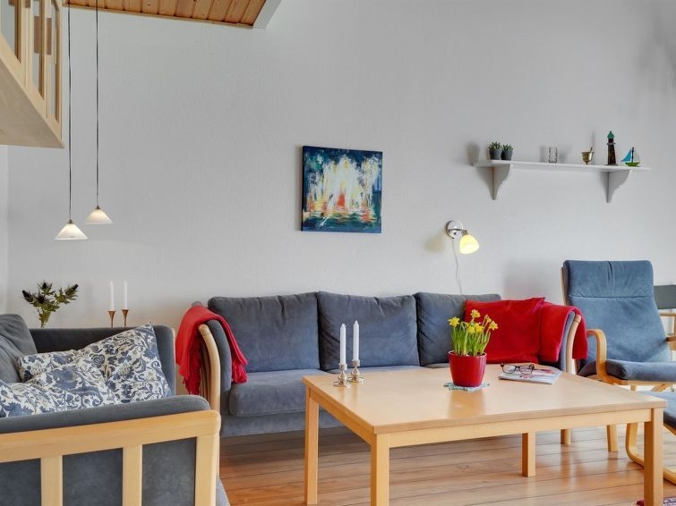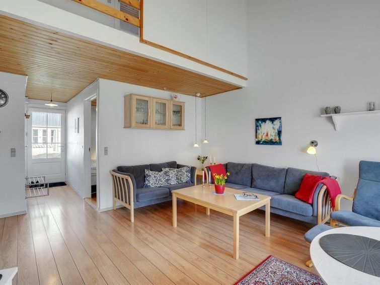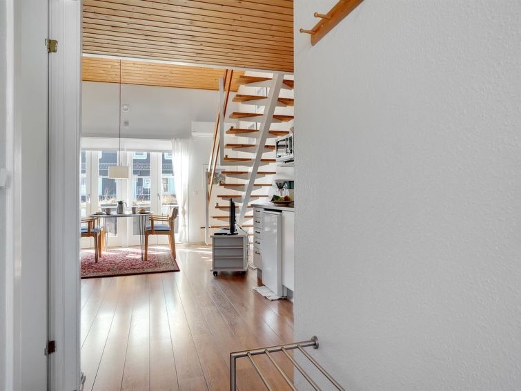 "Hortense" - 100m to the inlet in NW Jutland", apartamento de 3 estancias 57 m2. Vivienda adecuada para 5 adultos. Salón con TV y radio. 1 dorm. con 2 camas. Cocina (4 placas de vitrocerámica, microondas). Ducha/WC. Planta superior: 1 dorm. con 2 camas. 1 dorm. con 1 cama. Terraza 14 m2. Plaza de aparcamiento junto a la casa. A tener en cuenta: apartamento para no fumadores. Permitido máximo 2 mascotas / perros.