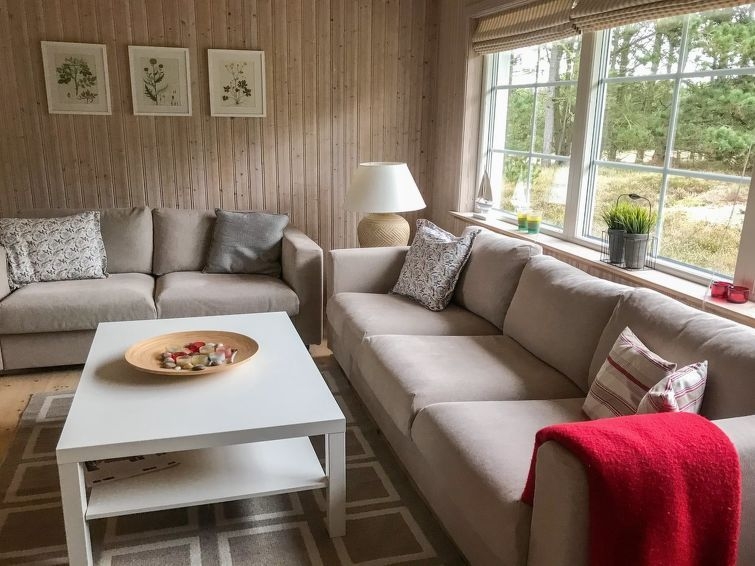 "Syrine" - 300m from the sea in NE Jutland", casa 3 estancias 85 m2. Vivienda adecuada para 6 adultos. Salón con TV, radio, CD y equipo de música. 1 dorm. con 1 cama doble. 1 dorm. con 1 sofá-cama doble. 1 dorm. con 2 camas. Cocina (horno, lavavajillas, 4 placas de vitrocerámica, microondas, congelador). Ducha/WC. Terraza 5 m2, cubierta. El alojamiento dispone de: Internet (Wifi). A tener en cuenta: apartamento para no fumadores. Permitido máximo 1 mascota / perro.