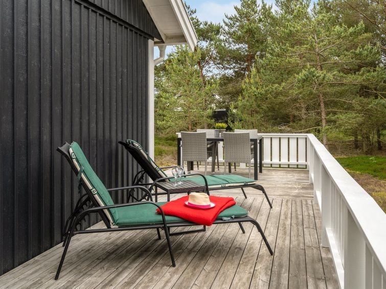 Casa unifamiliar del año 2005. A 300 m del mar. Privado: terreno en estado natural 1'300 m2. Terraza (25 m2). En el inmueble: lavadora. Aparcamiento junto a la casa. Tienda de comestibles 1 km. Campo de golf 3 km. El propietario no acepta grupos de adolescentes/jóvenes.