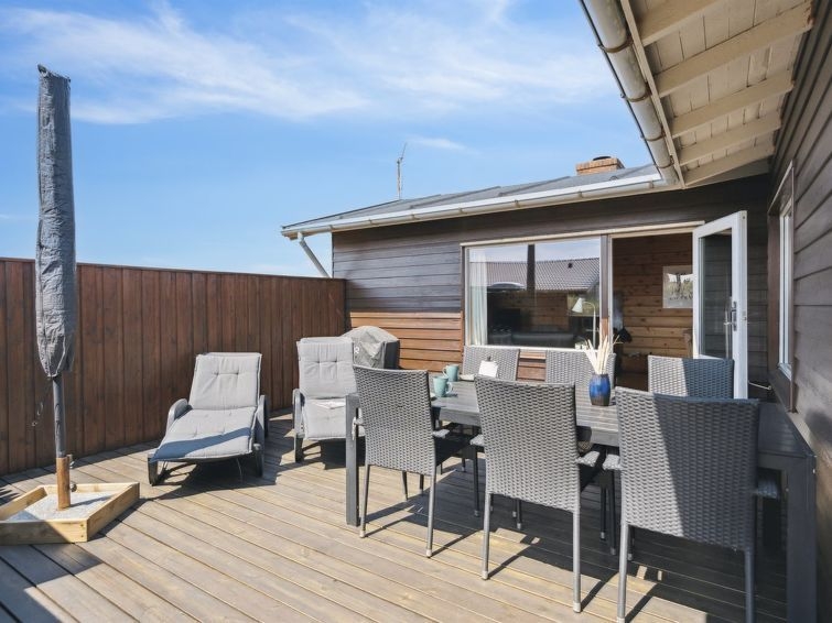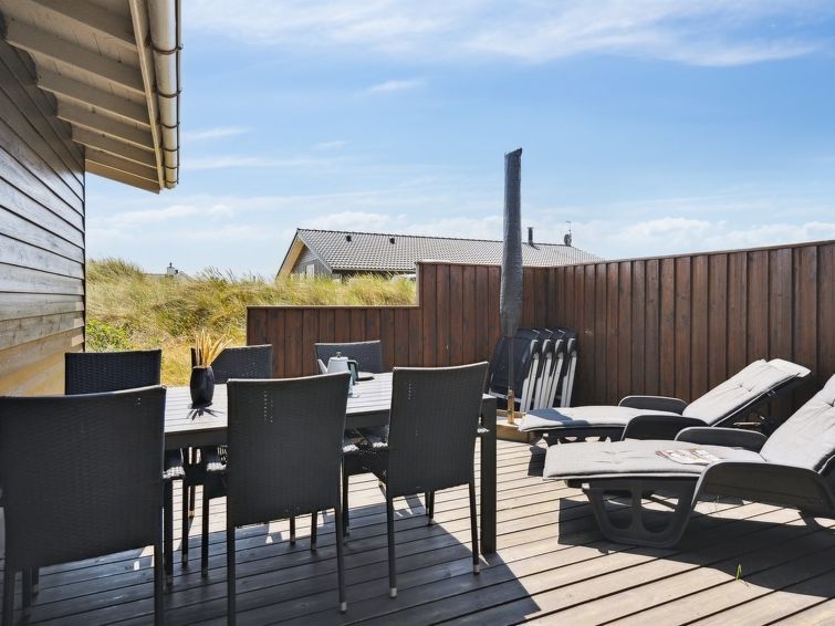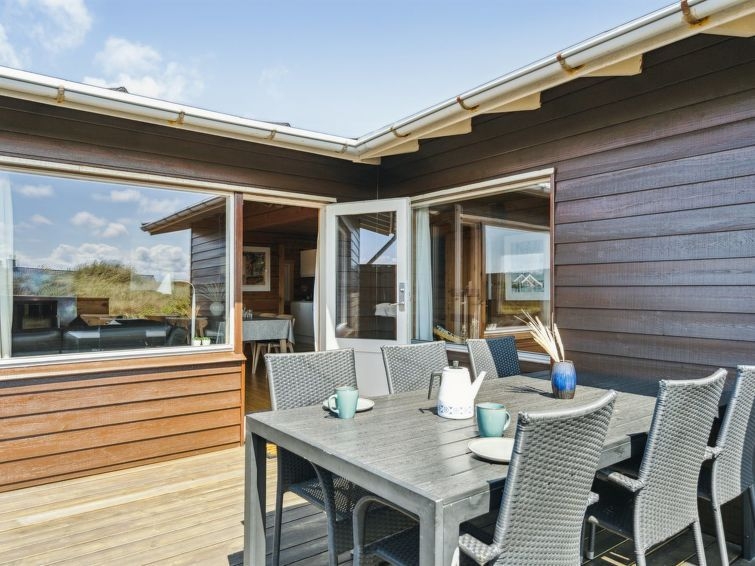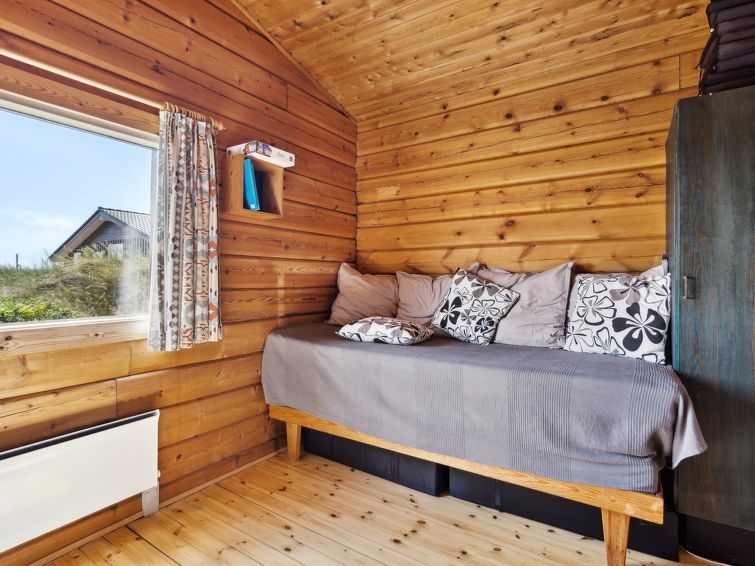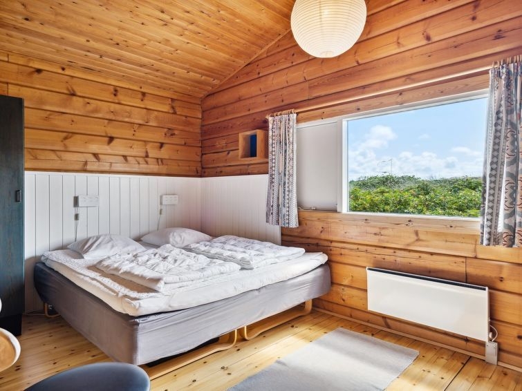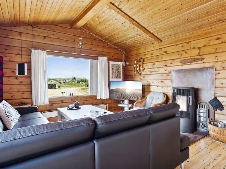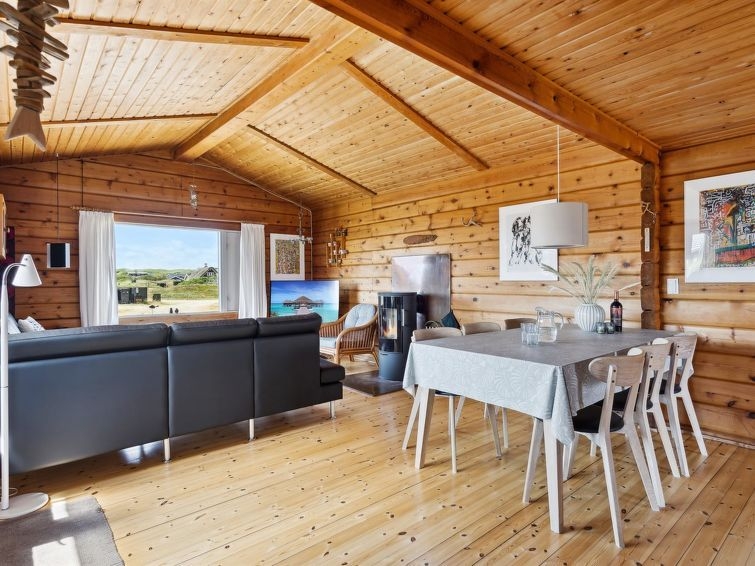 "Evelin" - from the sea in Western Jutland", casa 3 estancias 82 m2. Vivienda adecuada para 6 adultos. Salón con TV y DVD. 1 dorm. con 2 camas. 1 dorm. con 2 camas. 1 dorm. con 1 cama doble. Cocina (4 fogones, horno, lavavajillas, microondas, congelador). Ducha/WC. El alojamiento dispone de: Internet (Wifi).