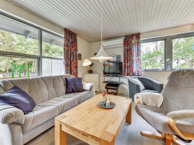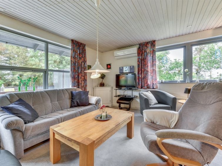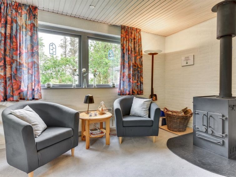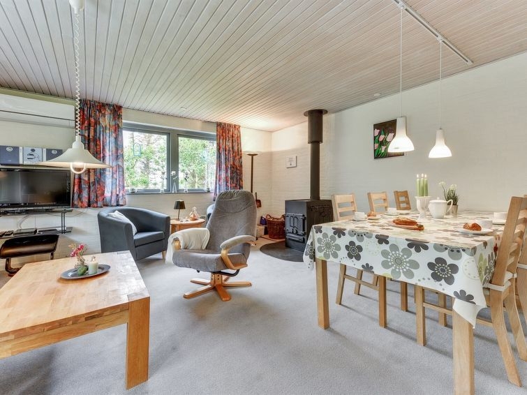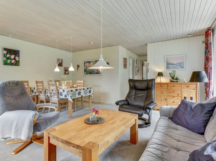"Björk" - from the sea in Western Jutland", casa 2 estancias 65 m2. Vivienda adecuada para 4 adultos + 1 niño. Salón con TV, CD, equipo de música y DVD. 1 dorm. con 1 cama doble. 1 dorm. con 2 camas. Cocina (horno, lavavajillas, 4 placas de vitrocerámica, microondas, congelador). Ducha/WC. Terraza 18 m2, cubierta. El alojamiento dispone de: trona, cuna (extra). Internet (Wifi). A tener en cuenta: apartamento para no fumadores. Permitido máximo 1 mascota / perro.