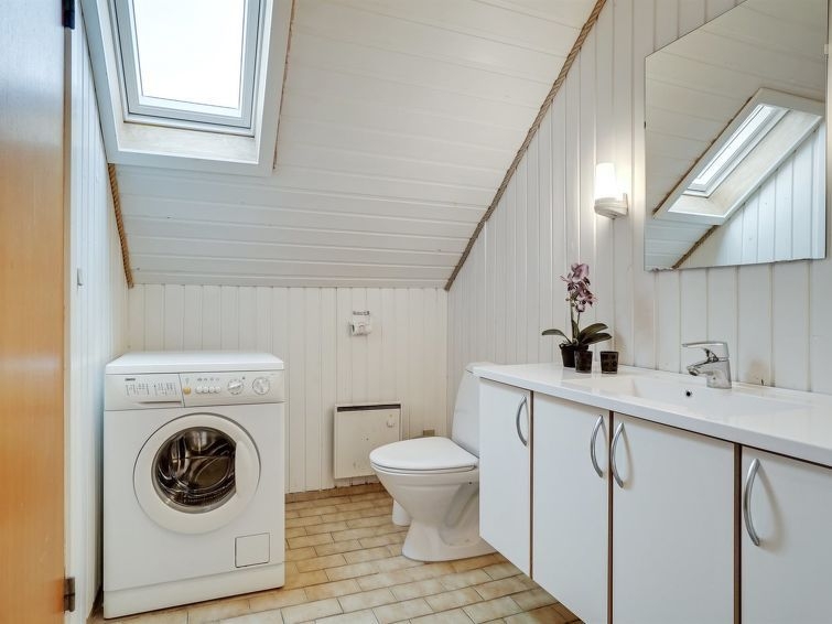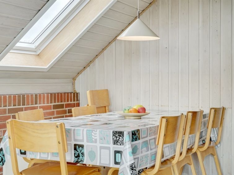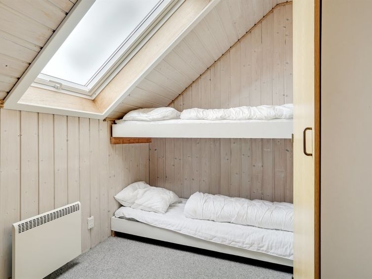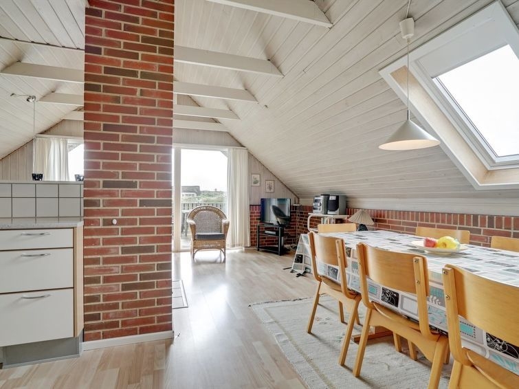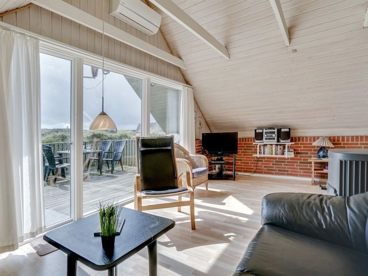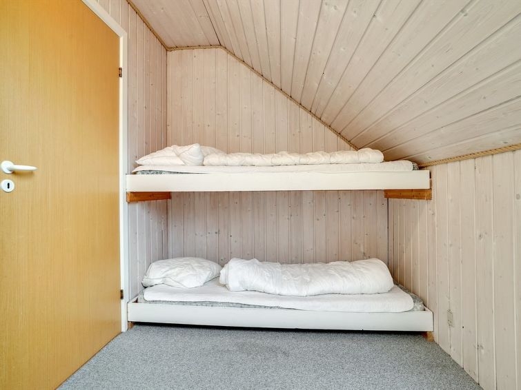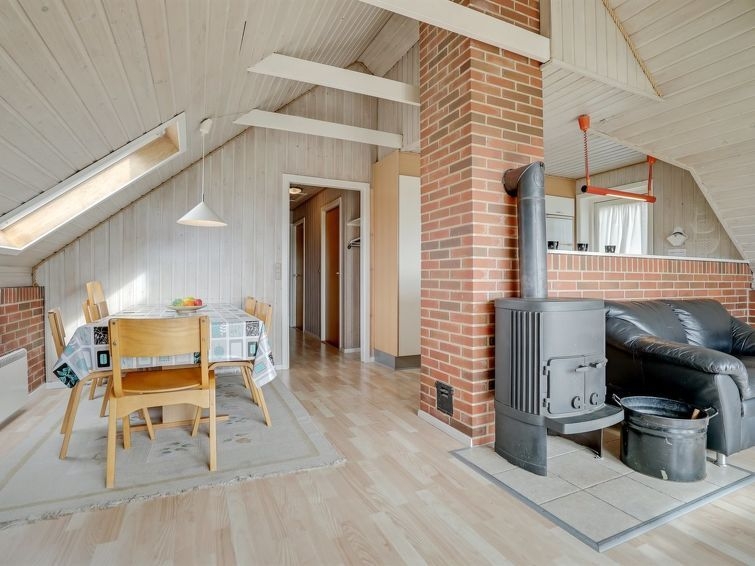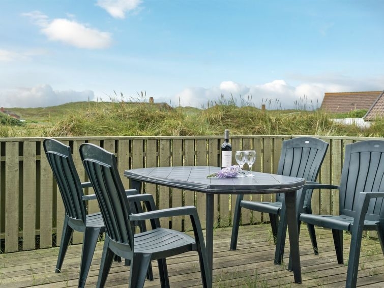 "Felina" - from the sea in Western Jutland", casa 3 estancias 85 m2. Vivienda adecuada para 6 adultos + 1 niño. Salón con TV, CD y equipo de música. 1 dorm. con 4 x 4 literas. 1 dorm. con 1 cama doble. 1 dorm. con 1 cama doble. Cocina (horno, lavavajillas, 4 placas de vitrocerámica, congelador). Ducha/WC. Terraza 6 m2, cubierta. El alojamiento dispone de: trona, cuna (extra). Internet (Wifi). A tener en cuenta: apartamento para no fumadores. Permitido máximo 2 mascotas / perros.