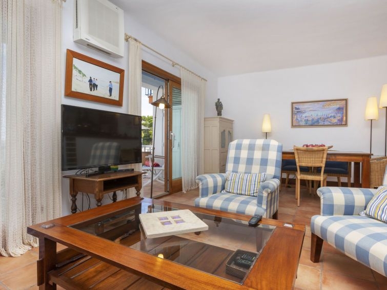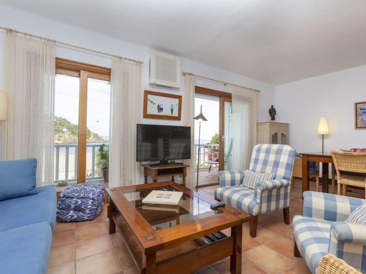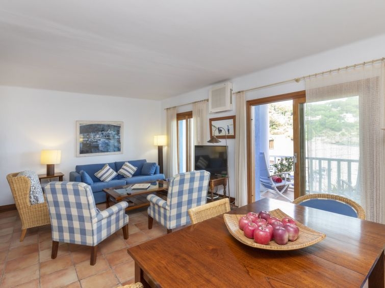 "Sa Riera Beach", apartamento de 4 estancias 90 m2. Luminoso, con mobiliario funcional: salón-comedor con TV digital y aire acondicionado. Salida a la terraza. 1 dorm. con 1 cama de matrimonio (150 cm, 190 cm de longitud), ducha/WC. 1 dorm. con 1 cama de matrimonio (135 cm, 190 cm de longitud). 1 dorm. con 1 cama (90 cm, 190 cm de longitud), ducha/bidet/WC. Cocina abierta (horno, lavavajillas, 4 Placas de inducción, tostadora, hervidor de agua eléctrico, microondas, congelador, cafetera eléctrica). Ducha/WC. Terraza grande. Muebles de terraza. Vista panorámica al mar. El alojamiento dispone de: lavadora, plancha, trona, cuna, secador de pelo. Internet (Wifi, gratis). A tener en cuenta: adecuado para familias. TV solamente ES. HUTG-062604