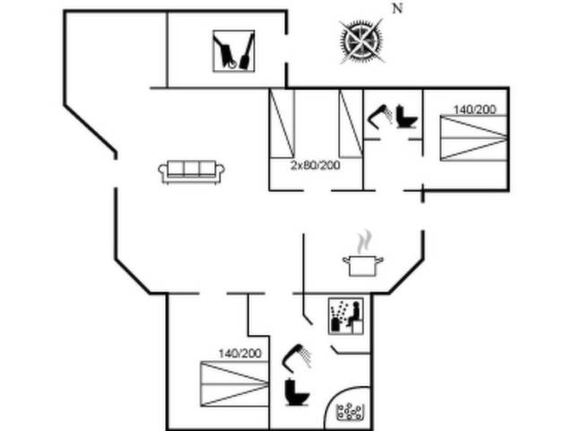 "Dagny" - 300m from the sea in Western Jutland", casa 3 estancias 96 m2. Vivienda adecuada para 6 adultos + 1 niño. Salón con TV, radio, CD y DVD. 1 dorm. con 1 cama doble. 1 dorm. con 2 camas. 1 dorm. con 1 cama doble. Cocina (horno, lavavajillas, 4 placas de vitrocerámica, microondas, congelador). 2 ducha/WC. El alojamiento dispone de: trona, cuna (extra). Internet (Wifi). A tener en cuenta: apartamento para no fumadores.