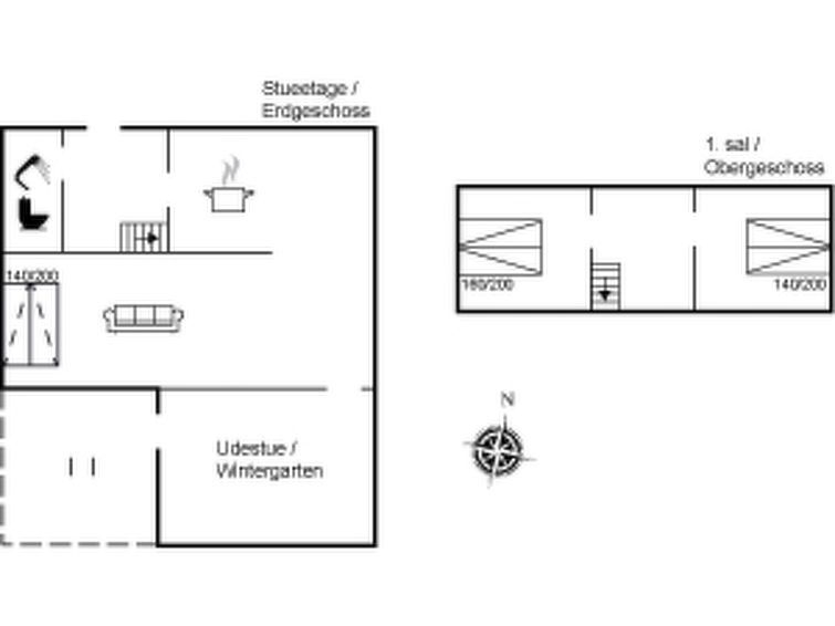 "Amra" - 200m from the sea in NW Jutland", casa 2 estancias 103 m2. Vivienda adecuada para 6 adultos + 1 niño. Salón con 1 sofá-cama doble, TV, radio, CD y DVD. 1 dorm. con 1 cama doble. 1 dorm. con 1 cama doble. Cocina (horno, lavavajillas, 4 Placas de inducción, microondas, congelador). Ducha/WC. Invernadero. El alojamiento dispone de: trona, cuna (extra). Internet (Wifi). A tener en cuenta: apartamento para no fumadores. Permitido máximo 1 mascota / perro.