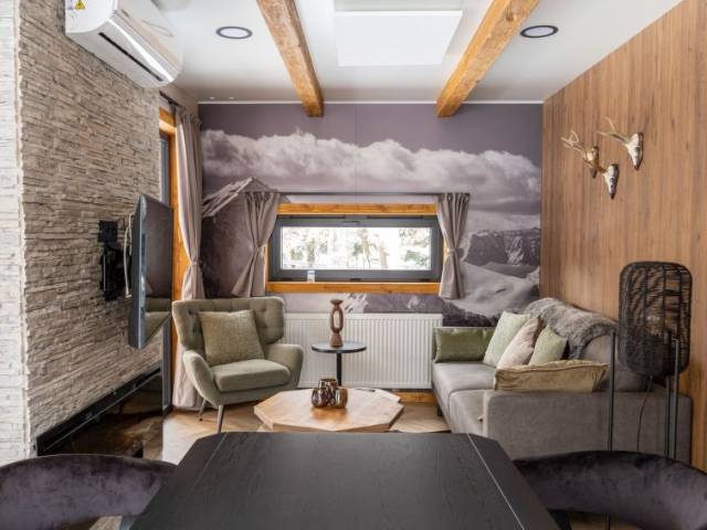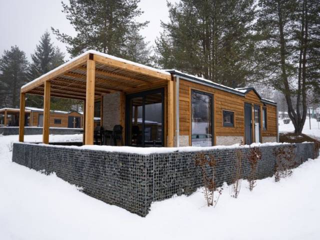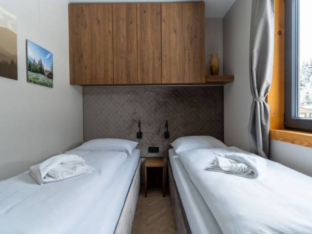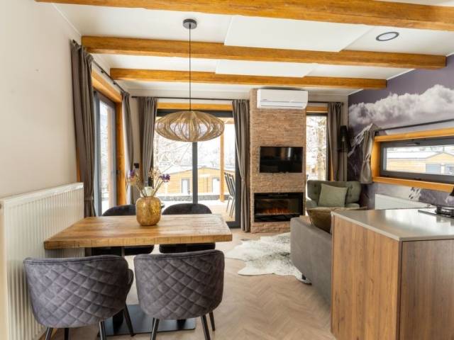 "Panorama Lodge 4", bungalow 3 habitaciones 60 m2, en la planta baja. Con mobiliario agradable: salón-comedor con mesa de comedor, TV y aire acondicionado. 1 dorm. con 1 cama doble. 1 dorm. con 2 camas. Cocina abierta (lavavajillas, Estufa de gas, hervidor de agua eléctrico, cafetera eléctrica, microondas/grill). Ducha/WC, WC separado. Calefacción. Terraza. Muebles de terraza. Vista a las montañas. El alojamiento dispone de: Internet (Wifi). Plaza de aparcamiento (1 coche) junto a la casa. A tener en cuenta: apartamento para no fumadores. El alojamiento es una casa tipo ejemplo o un apartamento tipo ejemplo. Solo se aceptan reservas para vacaciones. Se puede cargar un depóstio de 100 EUR por persona en destino.