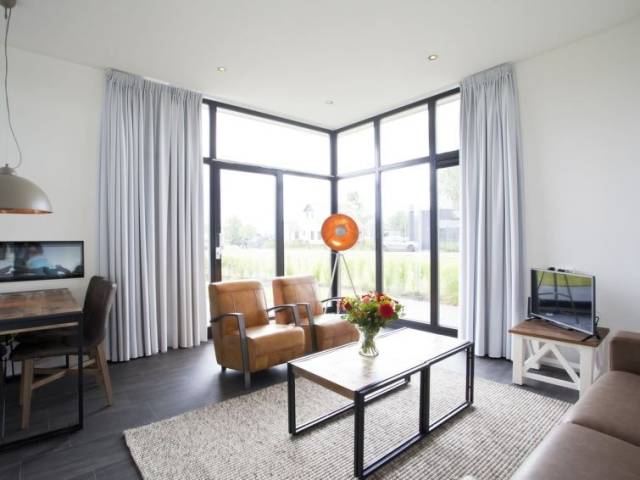 Complejo vacacional "EuroParcs Bad Hulckesteijn", confortable, rodeado de prados y campos. A orillas del lago, acceso directo a la playa. Comunitario: parque infantil. En el complejo: recepción, restaurante, acceso a internet, Wifi, sauna, gimnasio, solarium, sauna de rayos infrarrojos, zona de spa, tienda, lavadora, alquiler de bicicletas. Servicio a domicilio de panecillos. Puerto deportivo 100 m, escuela de surf 12 km. Atracciones en los alrededores: Dierenpark Amersfoort 22 km, Dolfinarium 29 km, Kasteel Staverden 30 km, Walibi Holland 39 km, Bataviawerf/Batavia Stad 49 km, Apenheul 50 km. El propietario no acepta grupos de adolescentes/jóvenes. A tener en cuenta: La foto corresponde a una de las viviendas. Se pueden reservar alojamientos adicionales. Los alojamientos pueden diferir en la superficie habitable, la distribución de las habitaciones, el equipamiento y el mobiliario.