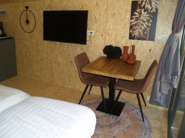 Complejo vacacional "EuroParcs Ruinen", confortable, rodeado de prados y campos. A orillas del lago, acceso directo a la playa. Comunitario: parque infantil. En el complejo: recepción, restaurante, acceso a internet, Wifi, sauna, gimnasio, solarium, sauna de rayos infrarrojos, zona de spa, tienda, lavadora, alquiler de bicicletas. Servicio a domicilio de panecillos. A tener en cuenta: La foto corresponde a una de las viviendas. Los alojamientos pueden diferir en la superficie habitable, la distribución de las habitaciones, el equipamiento y el mobiliario. "Solo Retreat 2", chalet de madera 2 habitaciones 30 m2, en la planta baja. Luminoso, con mobiliario funcional y agradable: salón-comedor con 1 sofá-cama y mesa de comedor. Salida a la terraza. 1 dorm. con 1 cama doble. Cocina abierta (lavavajillas, microondas, cafetera eléctrica) con mesa de comedor y rincón-comedor. Ducha/WC. Terraza. Muebles de terraza. El alojamiento dispone de: trona, cuna. Internet (Wifi). Plaza de aparcamiento junto a la casa. A tener en cuenta: casa para no fumadores. Solo se aceptan reservas para vacaciones. Se puede cargar un depóstio de 100 EUR por persona en destino.