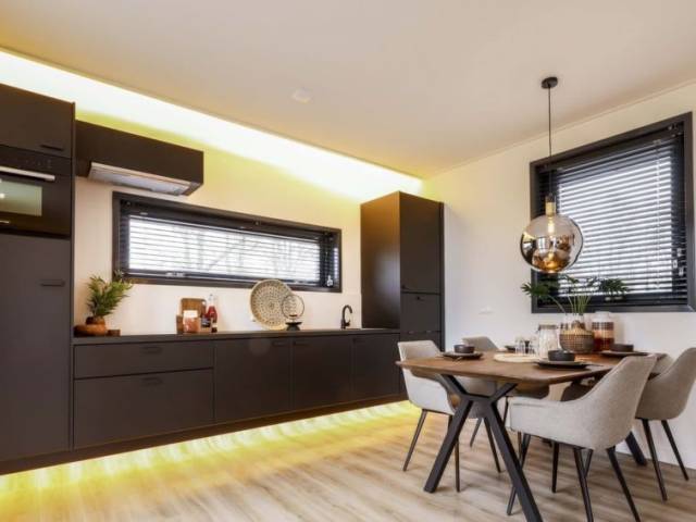 "Modus XL 4", bungalow 3 habitaciones. Luminoso, con mobiliario muy confortable y de estilo: salón-comedor con mesa de comedor y TV. Salida a la terraza. 2 dorm., cada habitación con 2 camas. Cocina abierta (4 fogones, hervidor de agua eléctrico, cafetera eléctrica, microondas/grill). Ducha, WC separado. Terraza. Muebles de terraza. El alojamiento dispone de: trona, cuna (extra). Internet (Wifi, gratis). Plaza de aparcamiento junto a la casa. A tener en cuenta: apartamento para no fumadores. El alojamiento es una casa tipo ejemplo o un apartamento tipo ejemplo. Solo se aceptan reservas para vacaciones. Se puede cargar un depóstio de 100 EUR por persona en destino.
