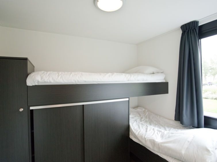 Resort "EuroParcs Bad Hoophuizen", amplio, confortable, rodeado de árboles. En las afueras de la localidad, a 3 km del centro de Hulshorst, a orillas del lago, acceso directo a la playa, en el campo. Comunitario: terreno con hierba, piscina cubierta climatizada (Disponible por temporada: 01.Ene. - 31.Dic.). Ducha/WC en zona de piscina, básquet. En el complejo: recepción, Wifi, sauna (extra). Baño turco (extra). Tienda, quiosco, lavandería (extra). A disposición: canoa, barco (extra). Zona de aparcamiento céntrica. Tienda 5 km, supermercado 6 km, restaurante 3.6 km, parada de autobús 3.5 km, estación de tren "Nunspeet" 8 km, playa de arena "Veluwemeer". Puerto deportivo 400 m, campo de golf 15 km, escuela de vela 200 m. Atracciones en los alrededores: Dolfinariumbrug Harderwijk 12 km, Zoo Apenheul 33 km, Attractie Park Walibi Holland 21 km, Harderwijk 12 km, Amsterdam 80 km, Kootwijkerzand 35 km. A tener en cuenta: coche recomendable. Animación en la temporada. Adecuado para familias. El propietario no acepta grupos de adolescentes/jóvenes. Pesca permitida [con previa autorización], amarre privado (extra). La foto corresponde a una de las viviendas. Se pueden reservar alojamientos adicionales. Los alojamientos pueden diferir en la superficie habitable, la distribución de las estancias, el equipamiento y el mobiliario.