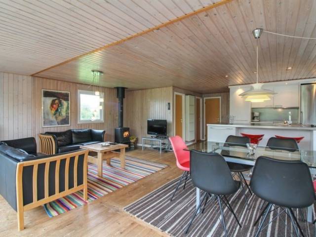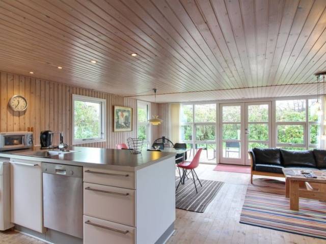 "Sande" - 450m from the sea in NW Jutland", casa 3 estancias 63 m2. Vivienda adecuada para 5 adultos. Salón con TV, radio, CD y DVD. 1 dorm. con 1 cama doble. 1 dorm. con 1 cama doble. 1 dorm. con 2 x 2 literas. Cocina (horno, lavavajillas, 4 placas de vitrocerámica, microondas, congelador). Ducha/WC. El alojamiento dispone de: Internet (Wifi). Permitido máximo 2 mascotas / perros.