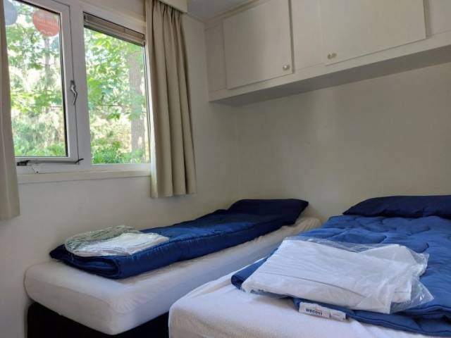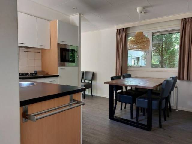 Resort "EuroParcs Beekbergen", idóneo para niños, rodeado de árboles. 225 apartamentos en la residencia. En las afueras de la localidad, a 10 km del centro de Apeldoorn, en un bosque. Comunitario: terreno 80'000 m2, parque, piscina cubierta rectangular climatizada (horario piscina: 10:00-20:30). Ducha/WC en zona de piscina, piscina para niños, tenis (extra), tenis de mesa, petanca, parque infantil (tobogán, columpio). En el complejo: recepción, restaurante, bar, acceso a internet, Wifi, sauna, gimnasio, solarium (todo con recargo), tienda, lavadora (extra), secadora (uso comunitario, extra), alquiler de bicicletas. Zona de aparcamiento céntrica. Tienda de comestibles 500 m, centro comercial 3 km, restaurante 500 m, estación de tren "Apeldoorn" 10 km. Atracciones en los alrededores: Loenense watervallen 4 km, Paleis het Loo 8 km, Apenheul 9 km, Nationaal Park De Hoge Veluwe 12 km, Familiepretpark Koningin Juliana Toren 12 km, Nederlands openluchtmuseum 16 km. A tener en cuenta: coche recomendable. Animación en la temporada. Adecuado para familias, adecuado para la tercera edad equipamiento para bebés a demanda (extra). El propietario no acepta grupos de adolescentes/jóvenes. Autopista en la proximidad 100 m de la casa. La foto corresponde a una de las viviendas. Se pueden reservar alojamientos adicionales. Todas las casas/apartamentos están diseñadas y amuebladas de manera diferente. Los alojamientos pueden diferir en la superficie habitable, la distribución de las habitaciones, el equipamiento y el mobiliario. "L'Avenir 6", bungalow 4 habitaciones 65 m2. Con mobiliario agradable: salón-comedor con TV. Salida a la terraza. 3 dorm., cada habitación con 2 camas (80 cm, 200 cm de longitud). Cocina abierta (lavavajillas, Estufa de gas, 4 fuegos, hervidor de agua eléctrico, cafetera eléctrica, microondas/grill). Ducha/WC. Calefacción eléctrica. Terraza. Muebles de terraza. El alojamiento dispone de: trona, cuna hasta 2 años (extra). Internet (Wifi, gratis). Plaza de aparcamiento (1 coche) junto a la casa. A tener en cuenta: casa para no fumadores. Permitido máximo 1 mascota / perro. El alojamiento es una casa tipo ejemplo o un apartamento tipo ejemplo. Solo se aceptan reservas para vacaciones. Se puede cargar un depóstio de 100 EUR por persona en destino.