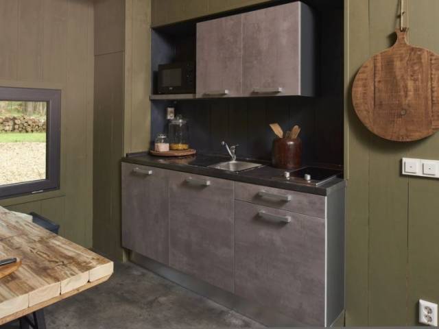"Tiny House Plus 4", chalet de madera estudio en 2 plantas. Con mobiliario agradable: salón-comedor con TV y estufa de lena. Salida a la terraza. Rincón-cocina (2 Placas de inducción, hervidor de agua eléctrico, microondas, cafetera eléctrica). Ducha/WC. Planta superior: (escala) rincón-dormitorio abuhardillado, abierto pequeño, altura de techo 120 - 170 cm con 2 posibilidades para dormir. (escala) rincón-dormitorio abuhardillado, abierto pequeño, altura de techo 120 - 170 cm con 2 posibilidades para dormir. Terraza. Muebles de terraza. El alojamiento dispone de: trona, cuna hasta 2 años (extra). Internet (Wifi, gratis). Plaza de aparcamiento (1 coche) a 100 m. A tener en cuenta: casa para no fumadores. Permitido máximo 1 mascota / perro. El alojamiento es una casa tipo ejemplo o un apartamento tipo ejemplo. Solo se aceptan reservas para vacaciones. Se puede cargar un depóstio de 100 EUR por persona en destino.