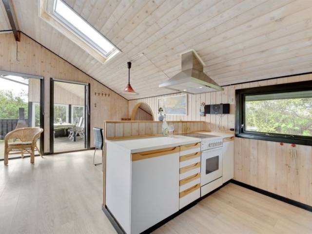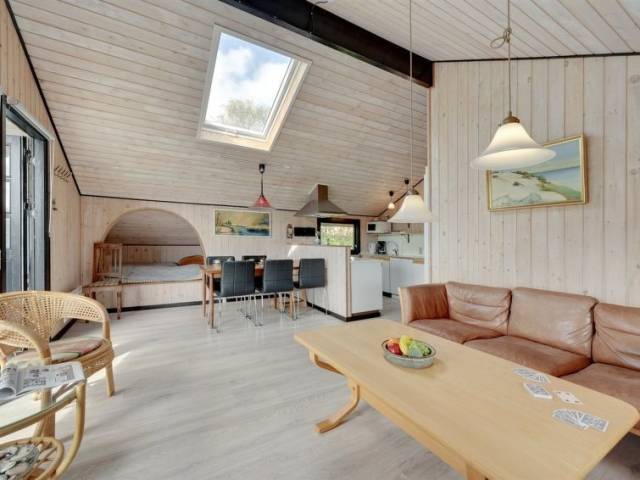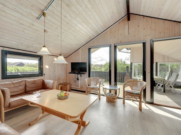 "Ravn" - 400m to the inlet in Western Jutland", casa 2 estancias 62 m2. Vivienda adecuada para 6 adultos. Salón con TV, radio y CD. 1 dorm. con 1 cama doble. 1 dorm. con 2 camas. 1 dorm.. Cocina (horno, lavavajillas, 4 placas de vitrocerámica, microondas, congelador). Ducha/WC. Terraza 28 m2, cubierta. El alojamiento dispone de: trona, cuna (extra). Internet (Wifi). A tener en cuenta: apartamento para no fumadores. Permitido máximo 1 mascota / perro.