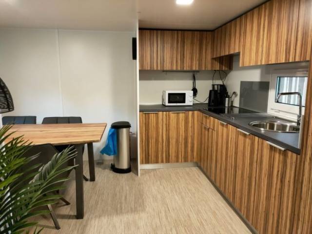 "Cottage 5", chalet de madera 3 habitaciones en la planta baja. Con mobiliario confortable: salón-comedor con 1 sofá-cama y pantalla plana. Salida a la terraza. 1 dorm. con 3 camas. 1 dorm. doble con 2 camas. Cocina abierta (lavavajillas, 1 Placas de inducción, microondas, cafetera eléctrica) con mesa de comedor y rincón-comedor. Ducha/WC. Terraza. Muebles de terraza. El alojamiento dispone de: Internet (Wifi). Plaza de aparcamiento (1 coche) junto a la casa. A tener en cuenta: casa para no fumadores. Solo se aceptan reservas para vacaciones. Se puede cargar un depóstio de 100 EUR por persona en destino.