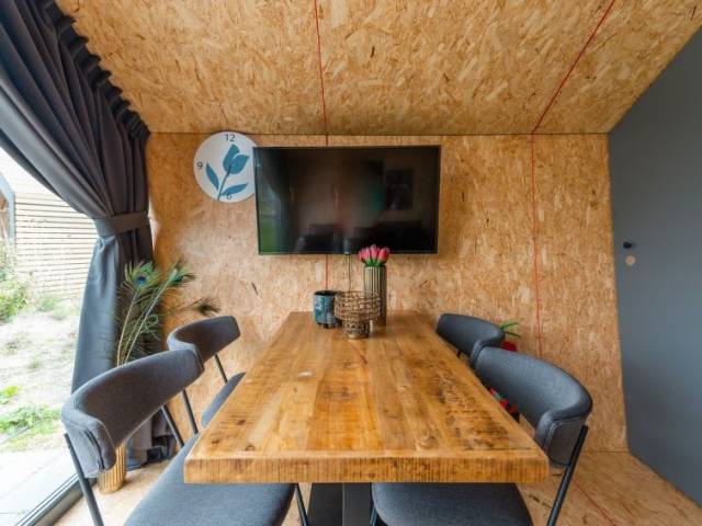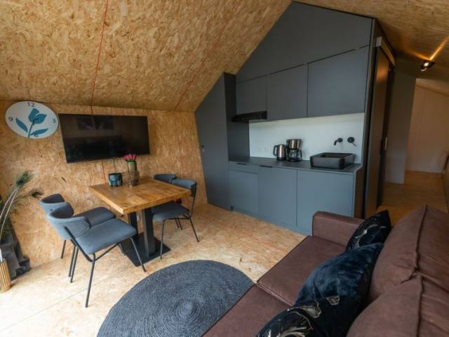 "Solo Retreat 4", chalet de madera 3 habitaciones en la planta baja. Con mobiliario confortable: salón-comedor con 1 sofá-cama y pantalla plana. 1 dorm. doble con 1 cama doble. 1 dorm. doble con 2 camas. Cocina abierta (lavavajillas, 1 Placas de inducción, microondas, cafetera eléctrica) con mesa de comedor y rincón-comedor. Ducha/WC. Terraza. Muebles de terraza. El alojamiento dispone de: Internet (Wifi). Plaza de aparcamiento (1 coche) junto a la casa. A tener en cuenta: casa para no fumadores. Solo se aceptan reservas para vacaciones. Se puede cargar un depóstio de 100 EUR por persona en destino.